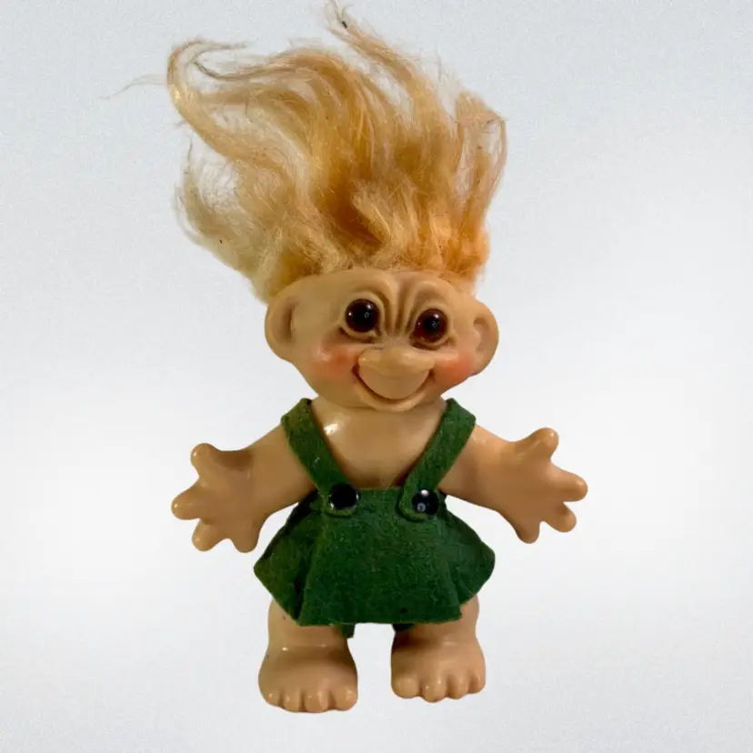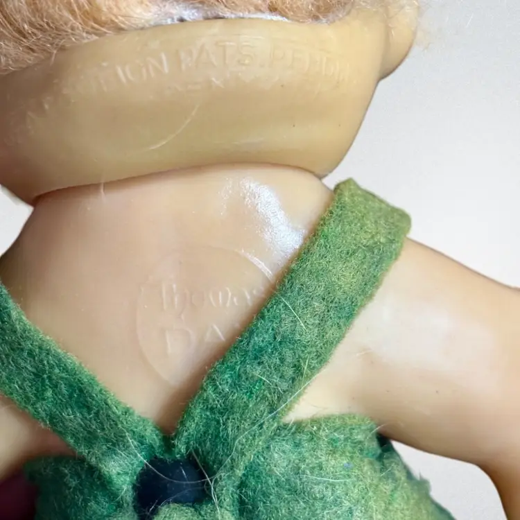 Made in Denmark. Has original clothes and glass eyes. Hair needs some love. 5” tall