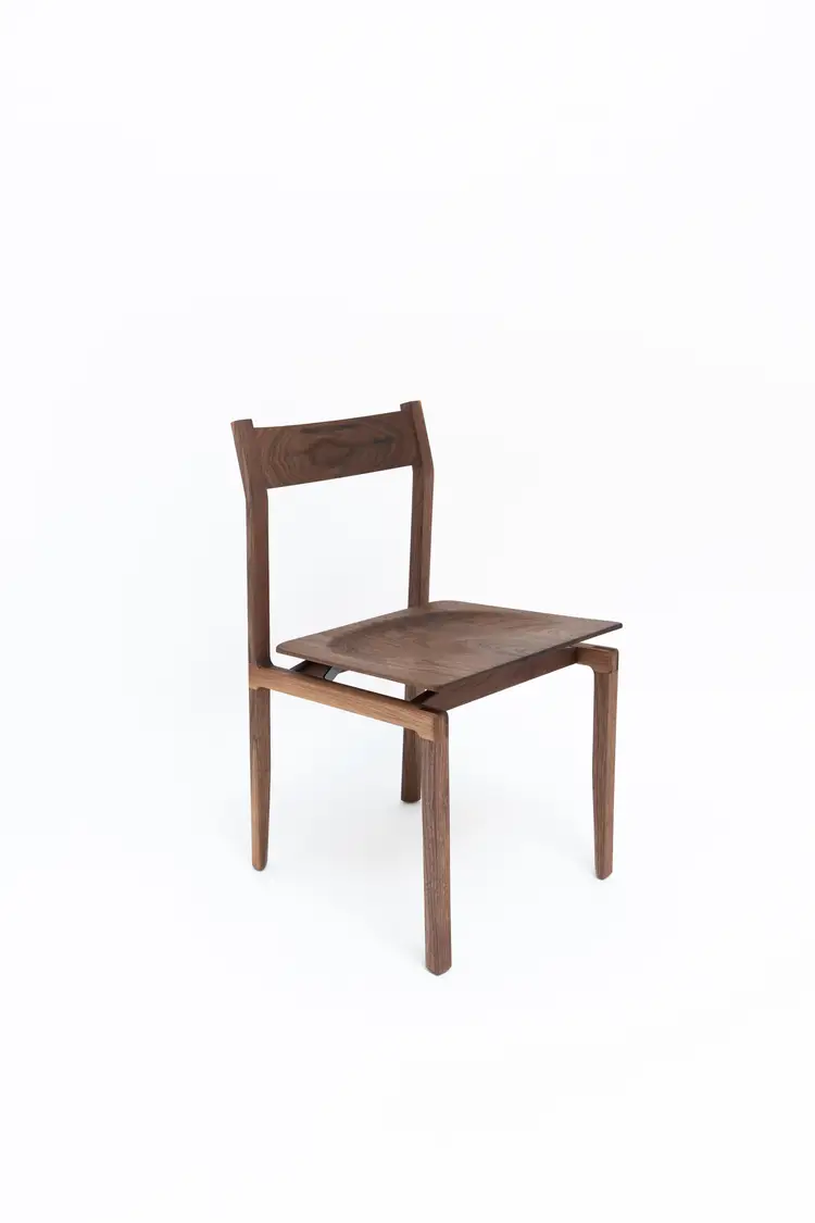 The Thomas dining chair was developed from a side view profile sketch, with the idea of visual lightness and a floating seat. This chair has lots of little details that will slowly reveal themselves over time. The chair is 19" deep. 17-1/2" wide and 32" tall. It has a seat height of 18". All chairs are built to order. Please contact me if you have any questions.