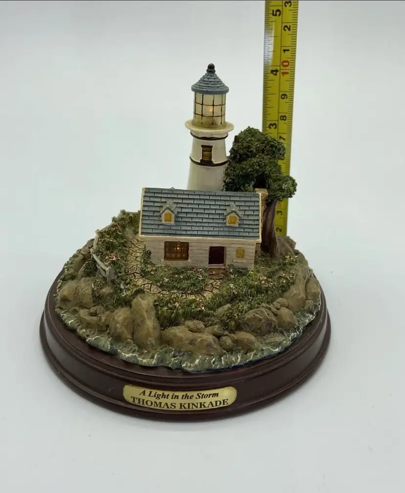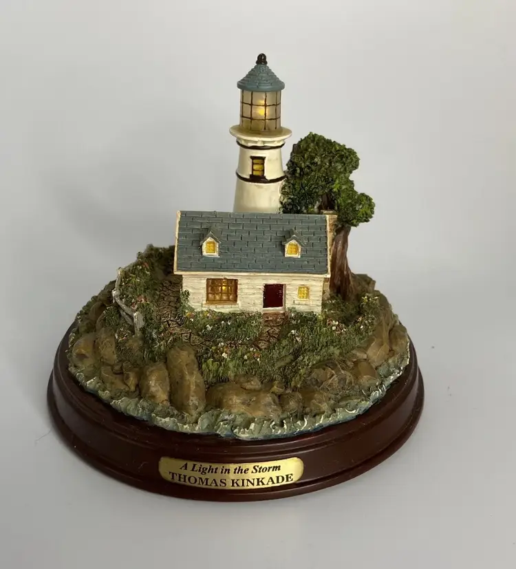 Thomas Kinkade “A Light in the Storm” Lighthouse Figurine. Condition is "Used". No chips or cracks. Requires two AA batteries, which are not included.