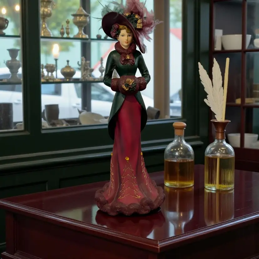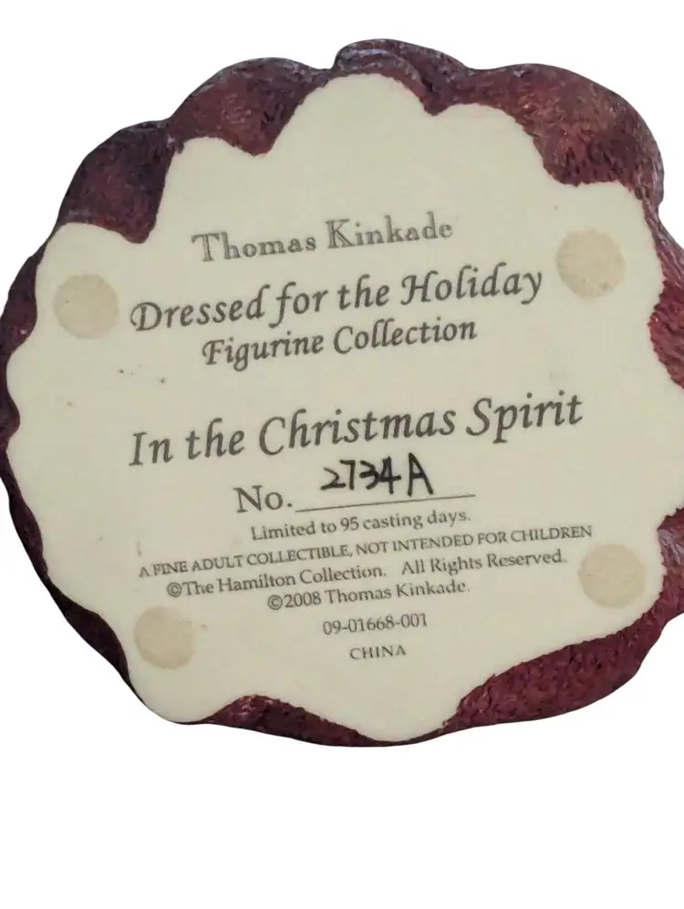 The Thomas Kinkade Dressed for the Holidays Figurine "In the Christmas Spirit" 2734A is a medium-sized collectible sculpture depicting a Victorian woman dressed for the holidays. This limited edition, hand-painted figurine is part of the Dressed for the Holidays collection by Thomas Kinkade and features intricate details that capture the essence of Christmas. Made of resin and measuring 8 inches in height, this multicolored figurine is a perfect addition to any room during the festive season. With its Victorian style and themed design, this figurine exudes a sense of nostalgia and charm that will delight collectors and holiday enthusiasts alike.