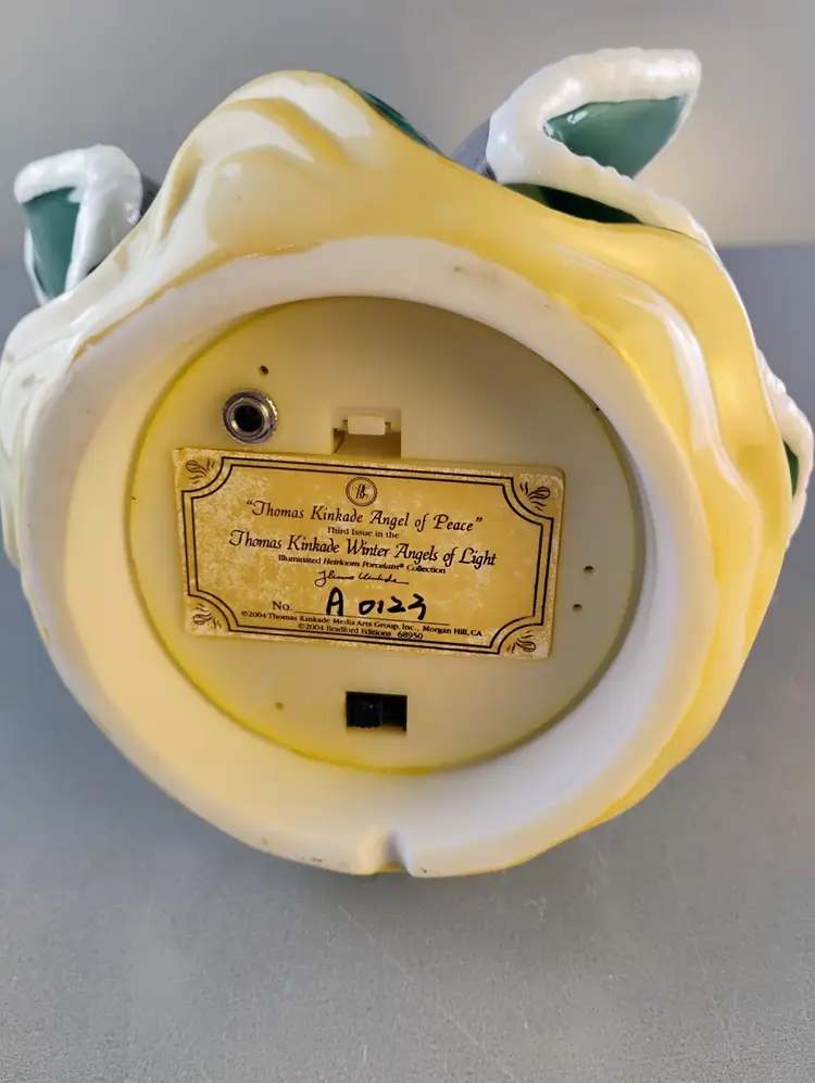 This listing is for an illuminated Thomas Kinkade Winter Angels of Light Angel of Peace 8" Figurine. She is beautiful and is in excellent condition with no damage.