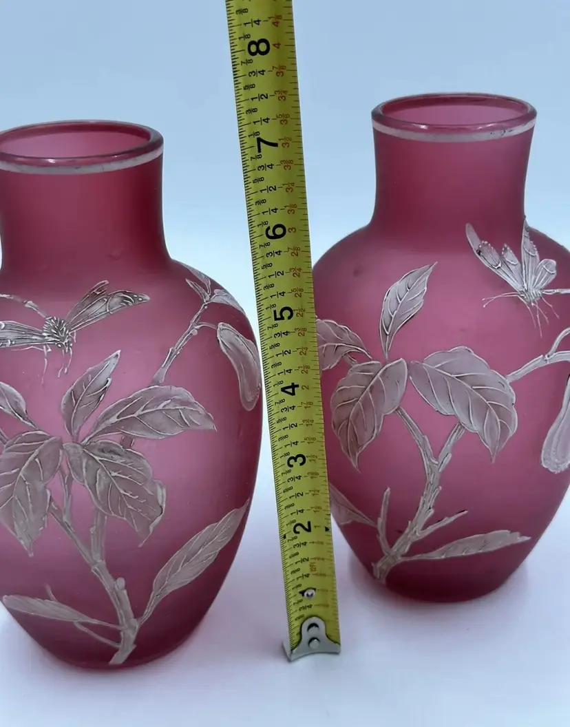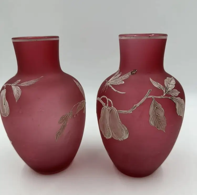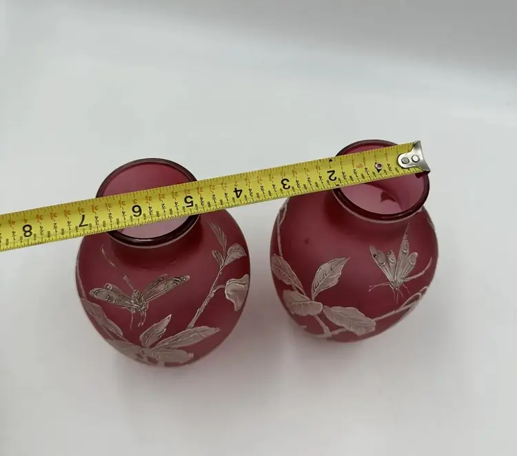 No chips, cracks or any other damage to the vases themselves. There are minor scratches from use on the under base of both and some wear on the enamel hand painting but no damage at all (all details pictured).