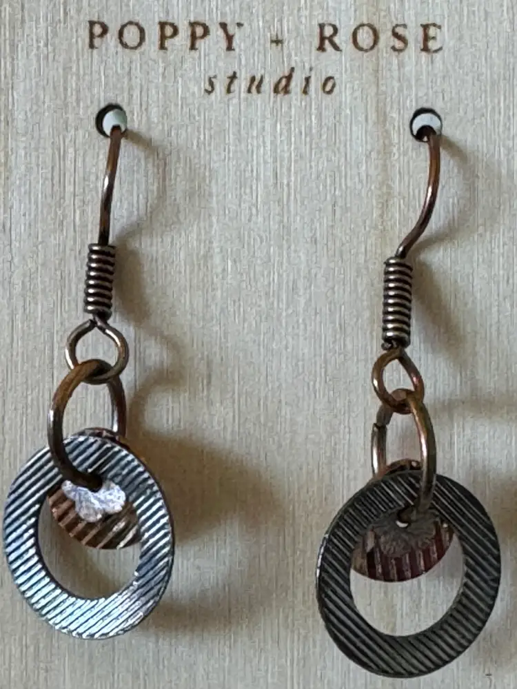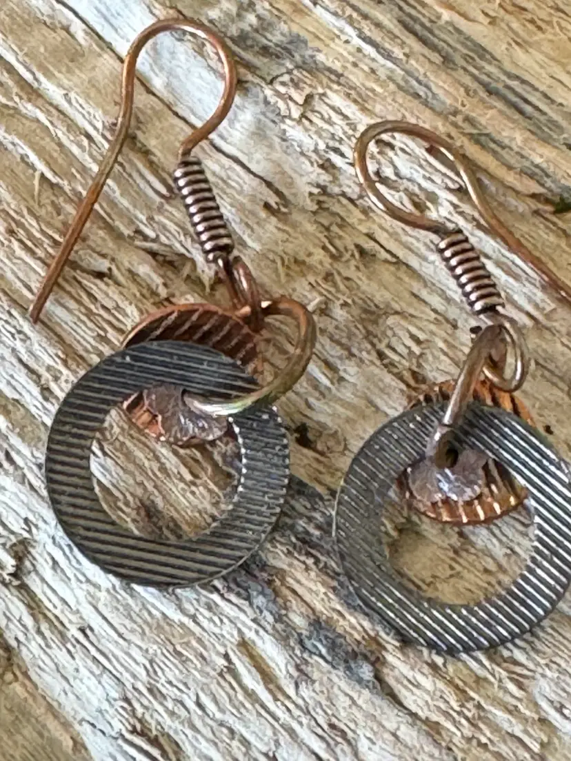 Open Textured Circle Encases Another Copper Line Embossed Circle Metal Flower Shape Floating On Top