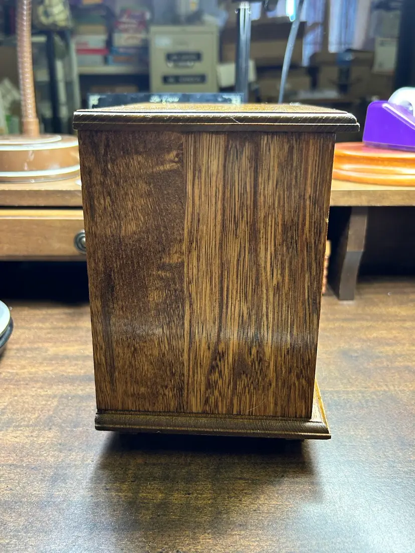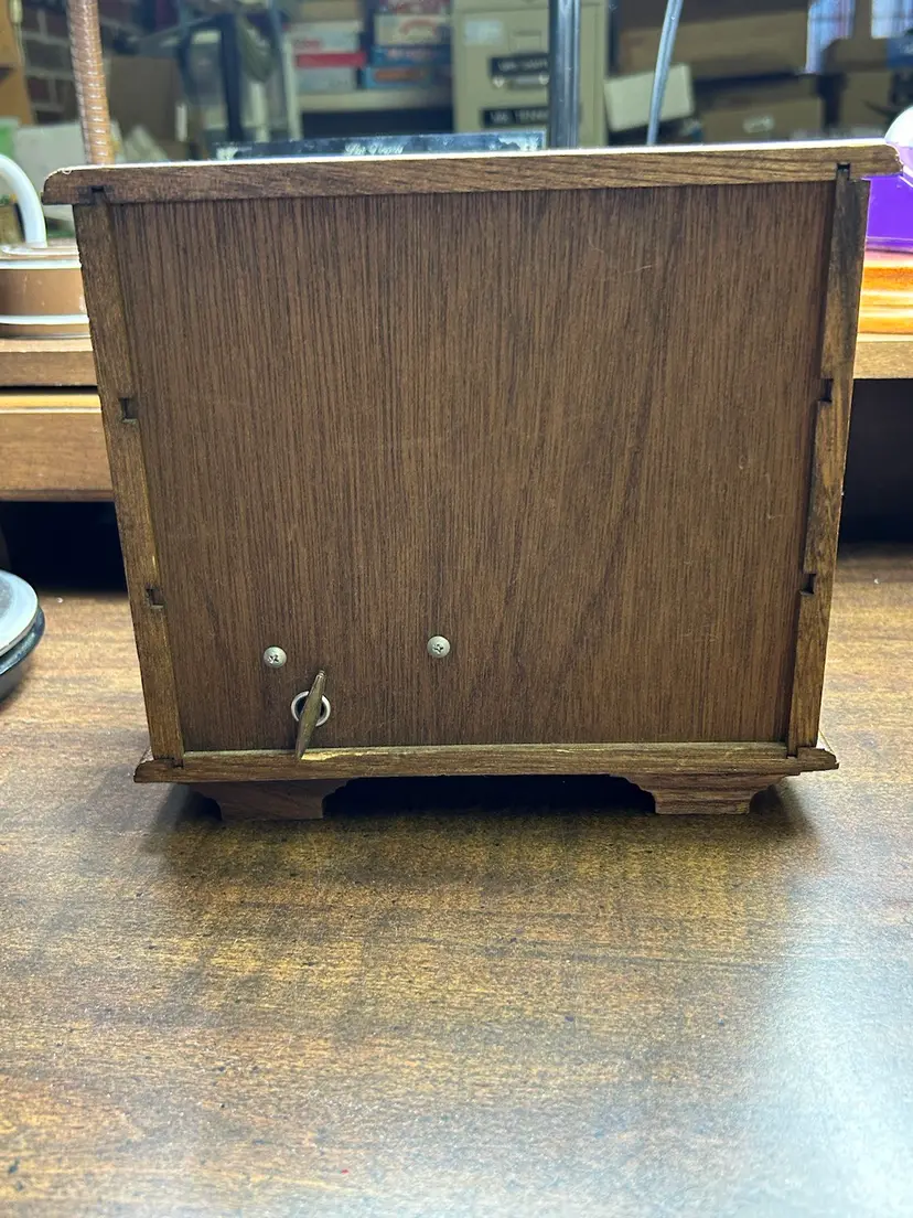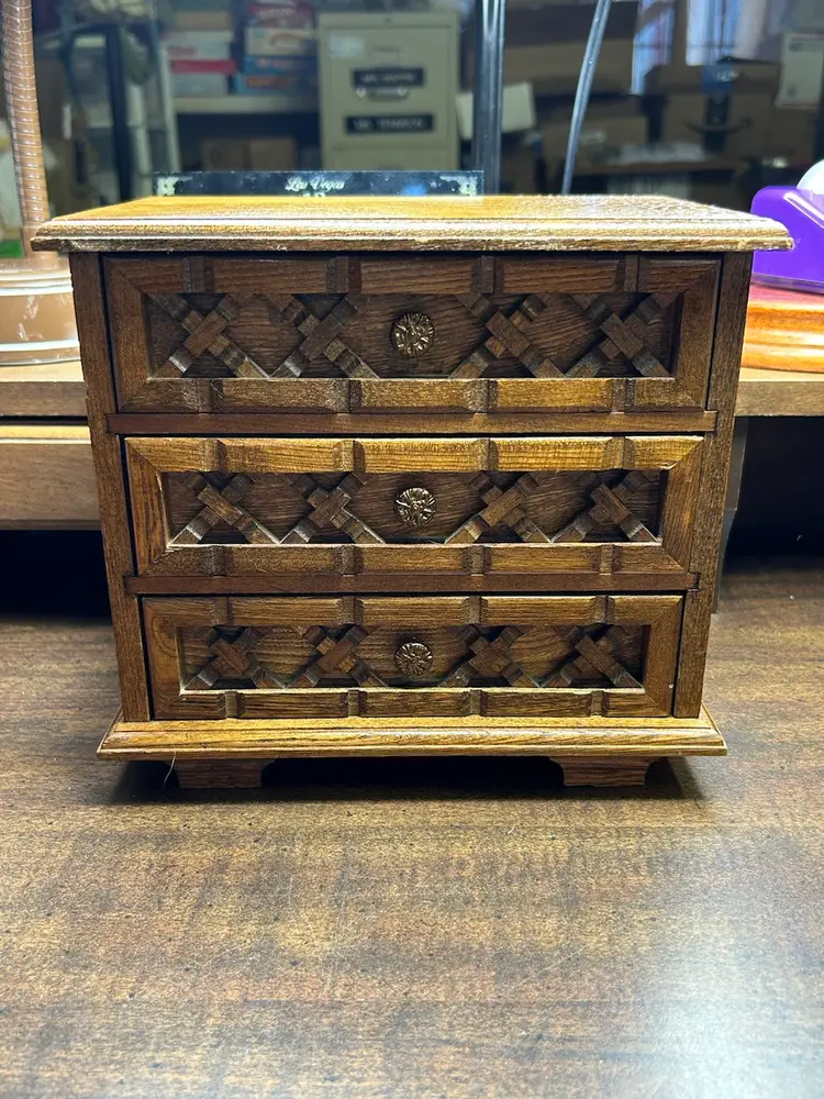 Very good condition. Drawers clean and slide easily. 7.5” tall overall. 8.25” wide. 5” deep. Drawers are approximately 2” tall and 2.5” deep, inside dimension. It has a music box mechanism but it doesn’t work. Will hold many treasures.
