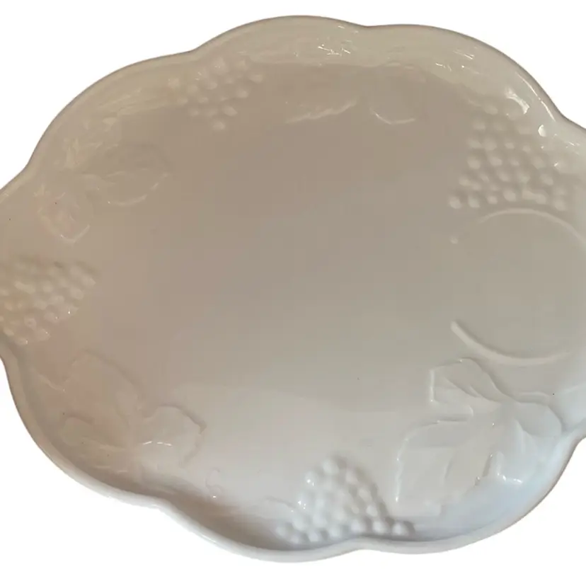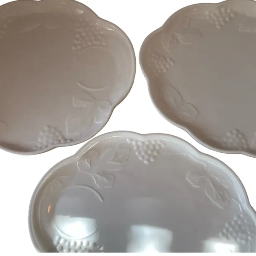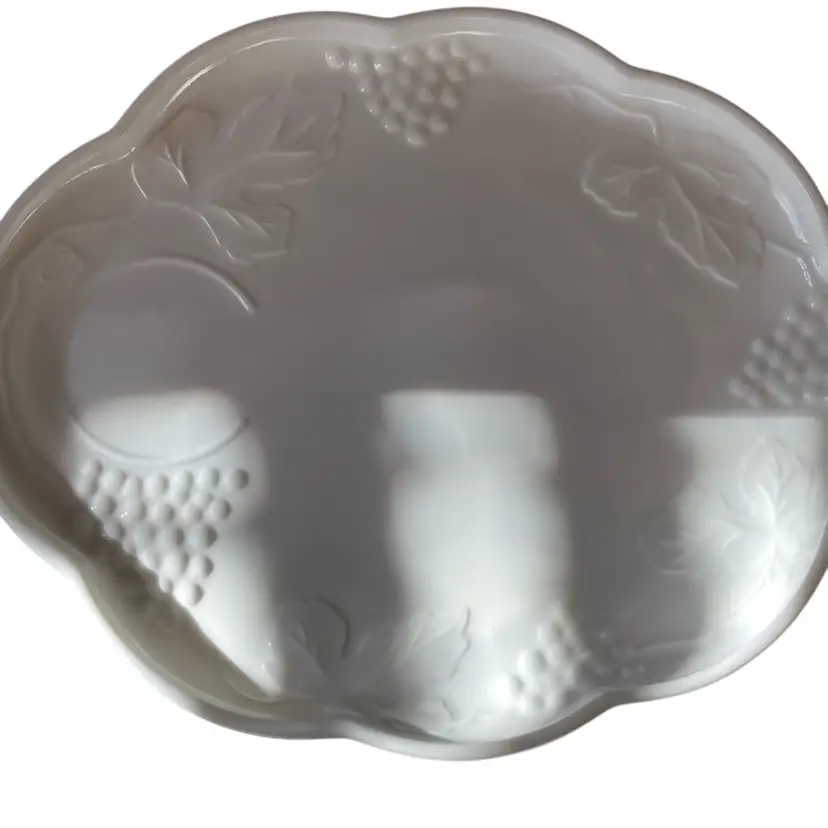 8” x 10” milk glass plates in perfect condition.