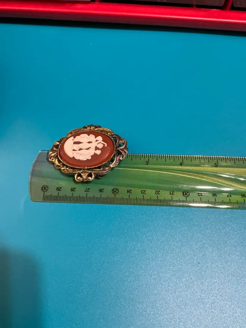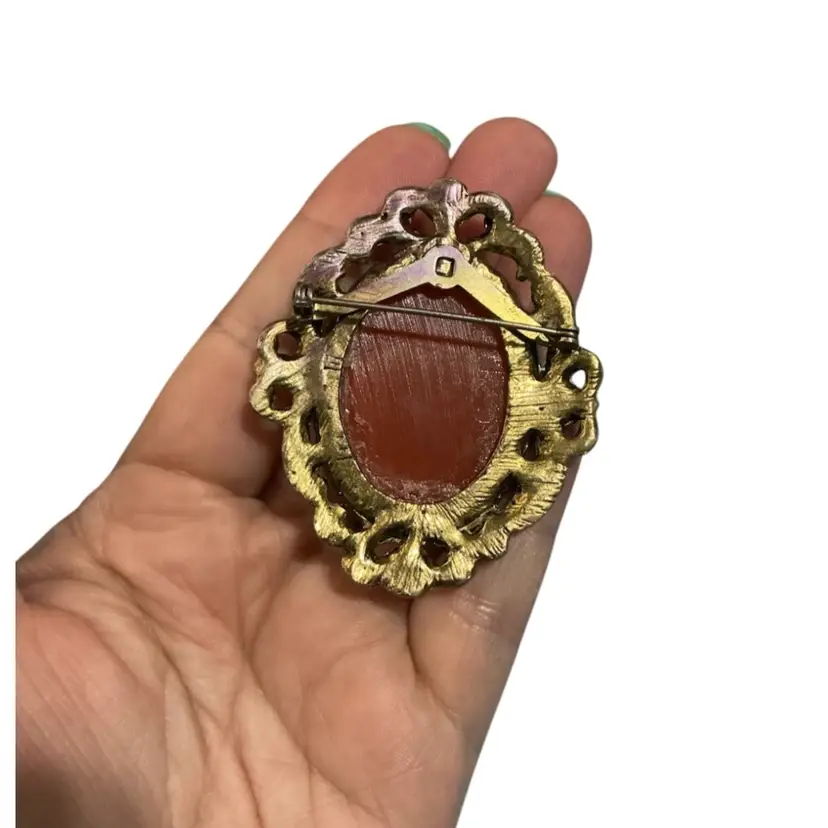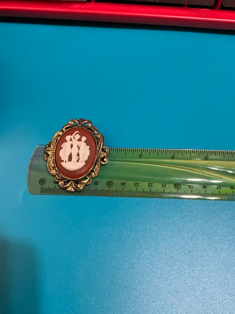 Three Muses Cameo Brooch 2 1/2” x 2”. Some wear to the metal.