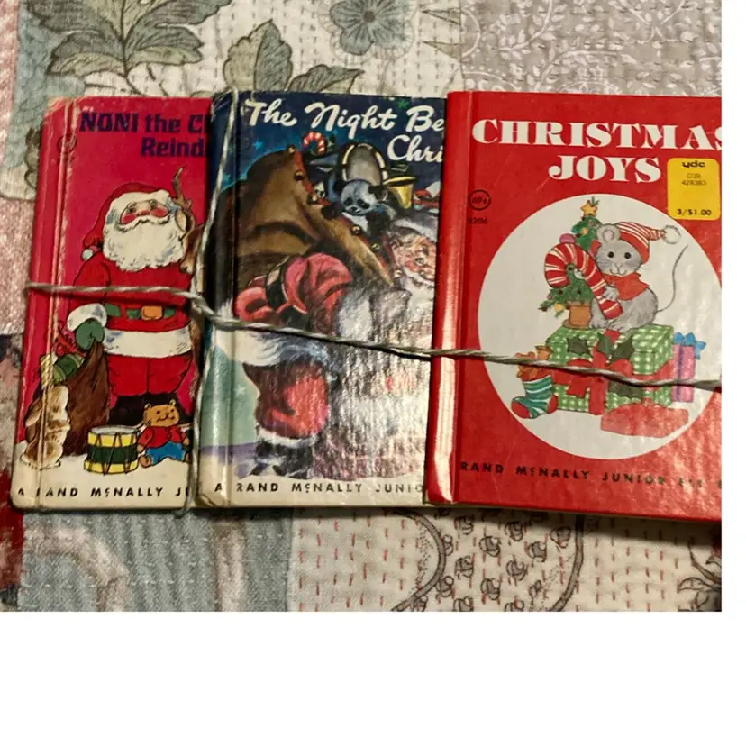 The covers are in different stages of wear. “Christmas Joy” is in great condition, The Night before Christmas” has wear around the edges, and “Noni the Christmas Reindeer” has damage on the front and back cover. Pages inside however are in very good condition.