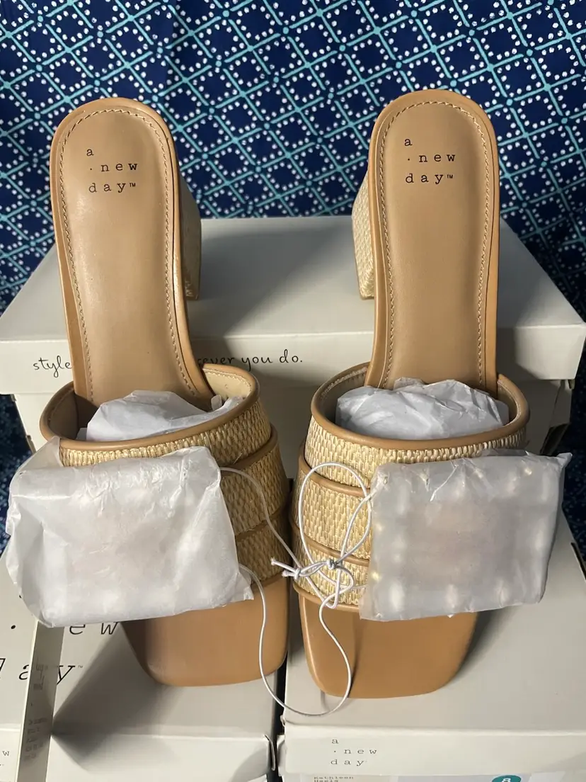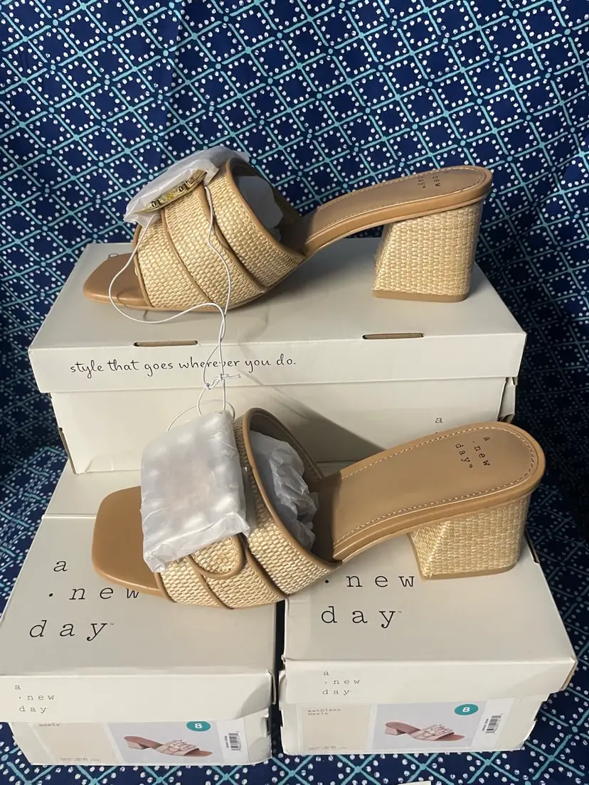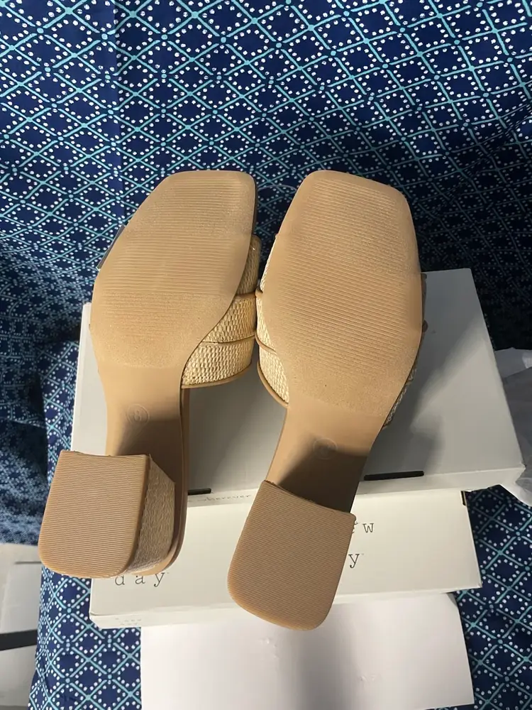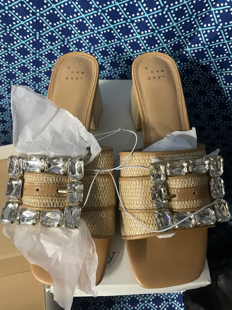 Beautiful slip on sandals with a large jewel embellishment on top for a classic look to wear with anything. Women’s size 8