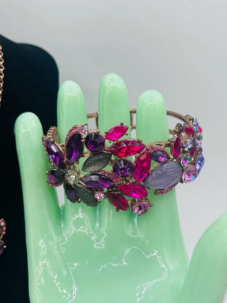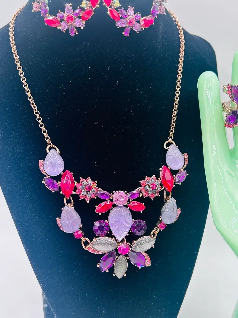Bracelet measurement is 7 inches necklace is adjustable. Longest length will be 20 inches. All three pieces are in very good shape. No stones are missing and wearable condition. Earrings and necklace. Have original tags. Jadite hand and necklace display is not included .