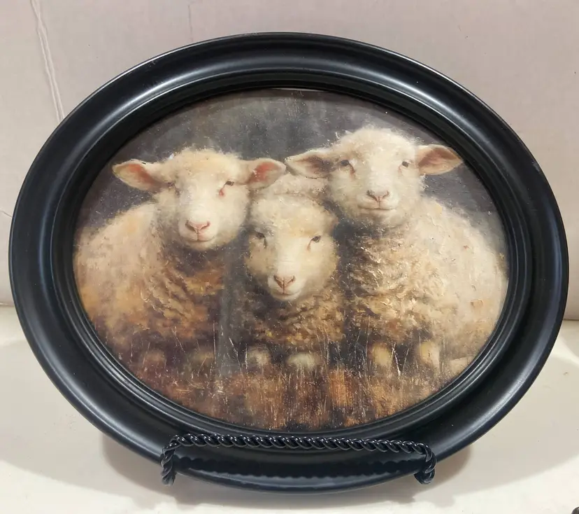 Three Sheep Oval Black Wall Frame 10x12" (stand not included)