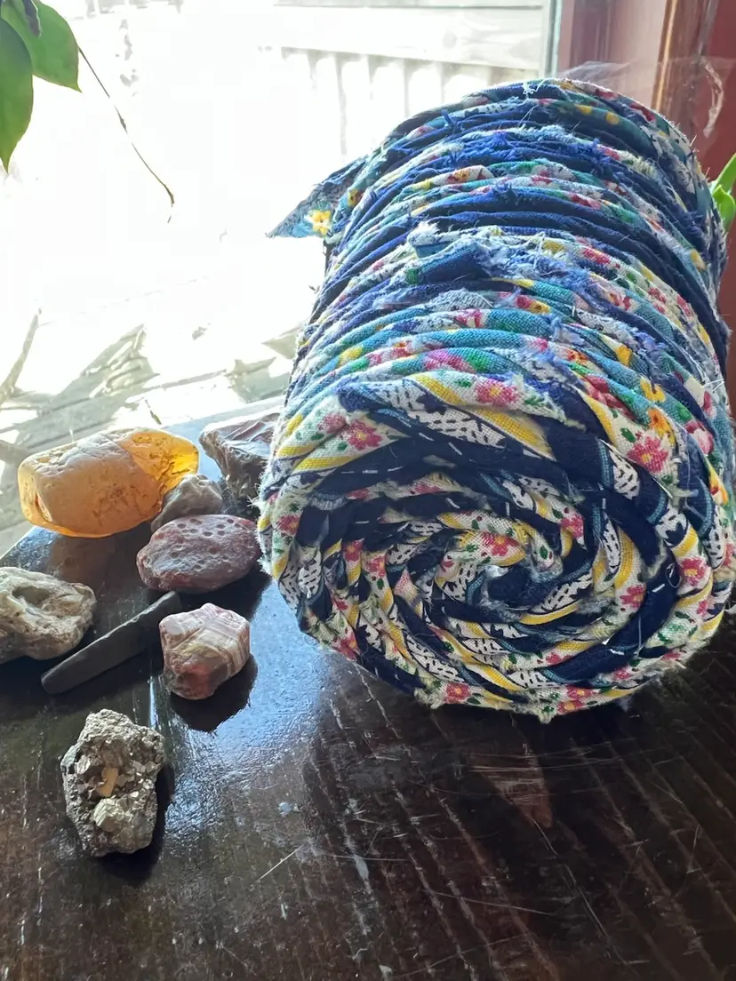 Cachepot hand crafted with vintage/upcycled fabric and upcycled plastic. 100% of the profits will go towards Minnesota mutual aid which will be donated to prismmpls.org Any overage on shipping cost will also be donated to mutual aid. Rocks not included 😉