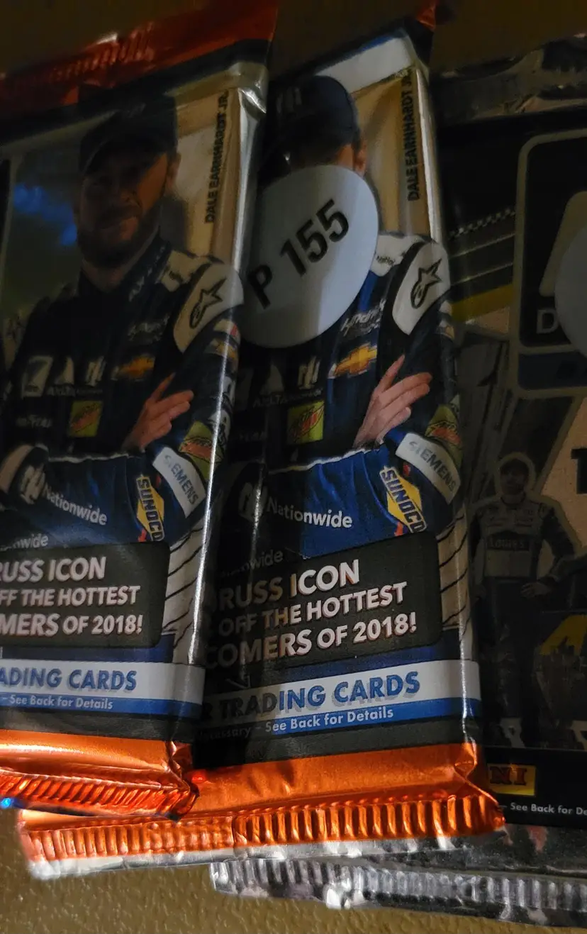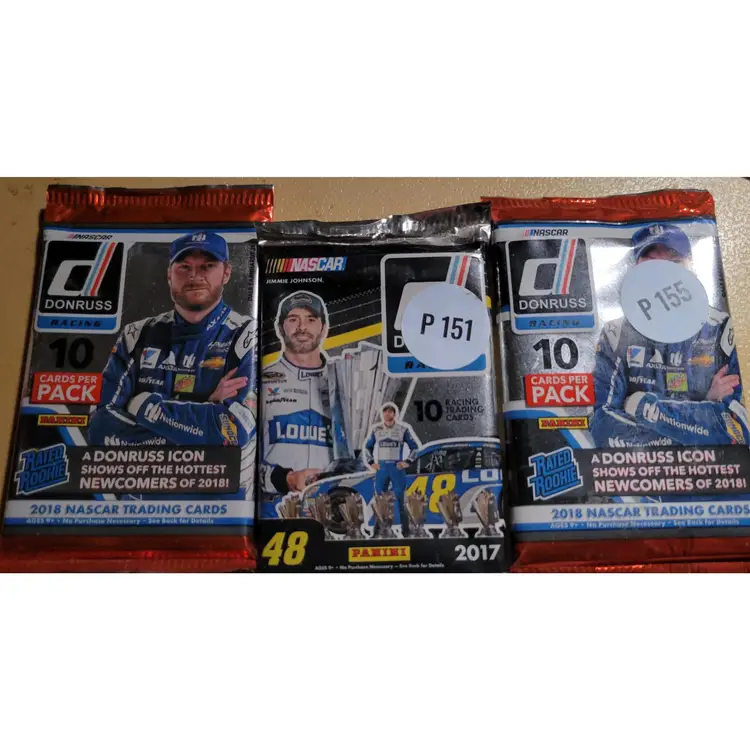 One pack is 2017 the other two are 2018. The 2017 pack has Jimmie Johnson and the two 2018 packs have dale jr.