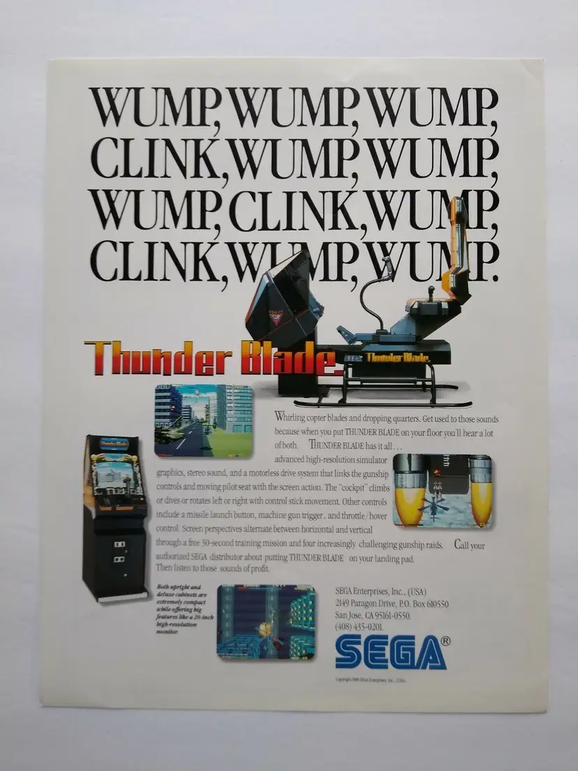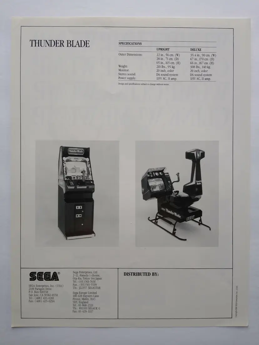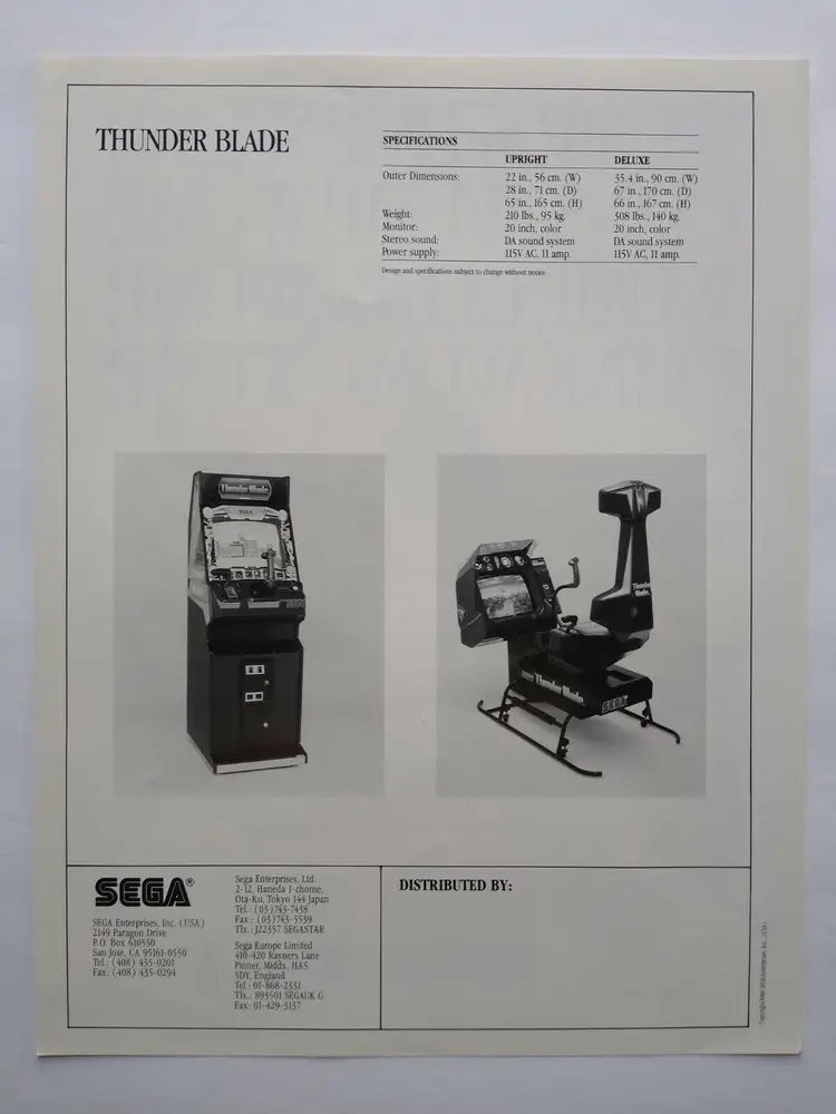 Arcade: Flyer Modified Item: No Country/Region of Manufacture: United States Original/Reproduction: Original Year: 1988 Game Title: Thunder Blade Brand: SEGA