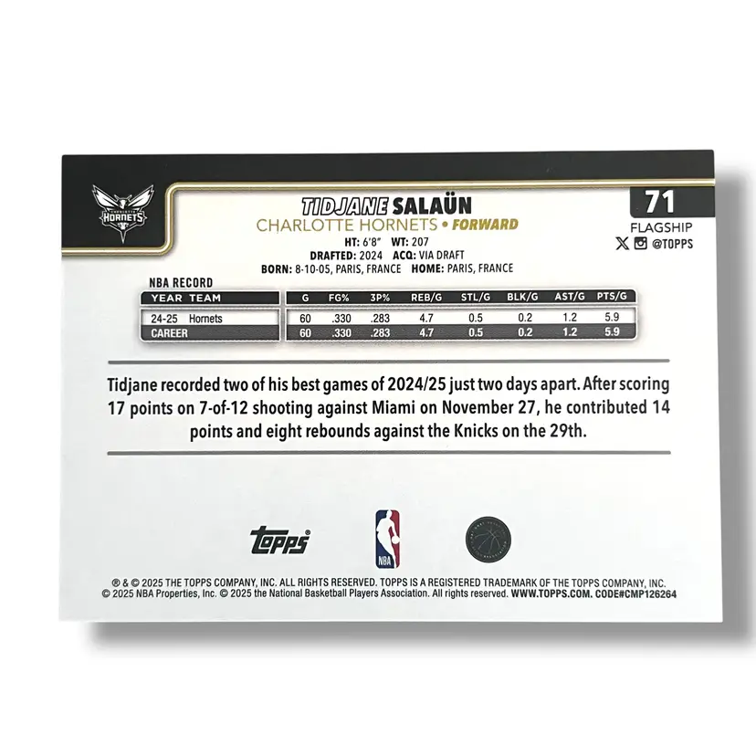 Here We Have a Tidjane Salaun 2025-26 Topps Target Blackout Cart Load 06/25
