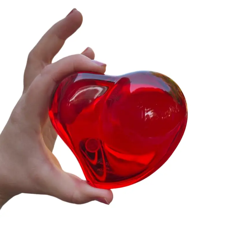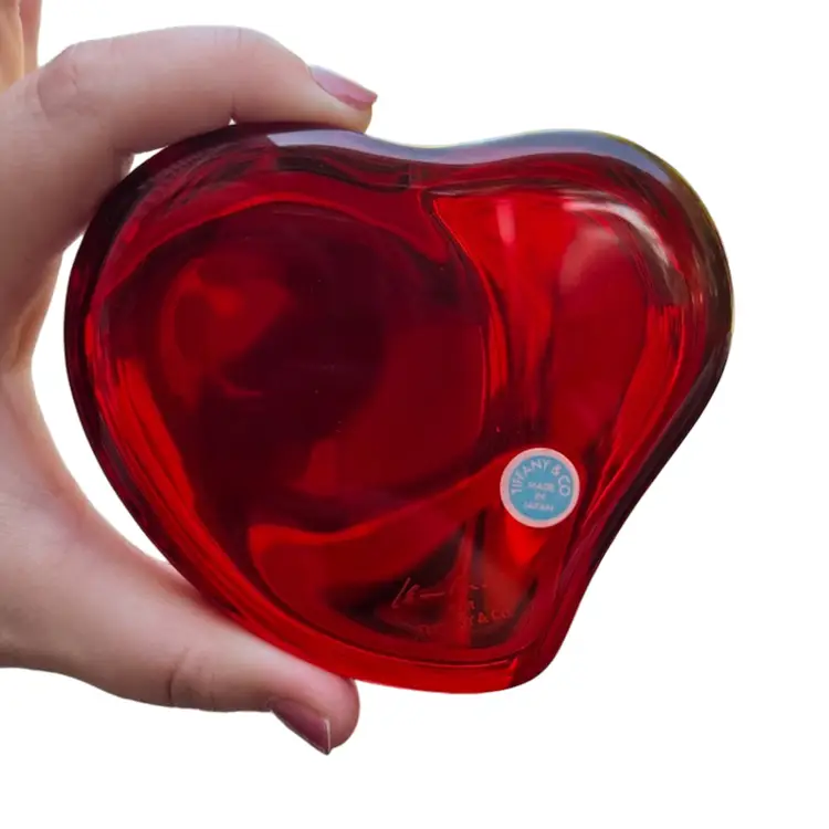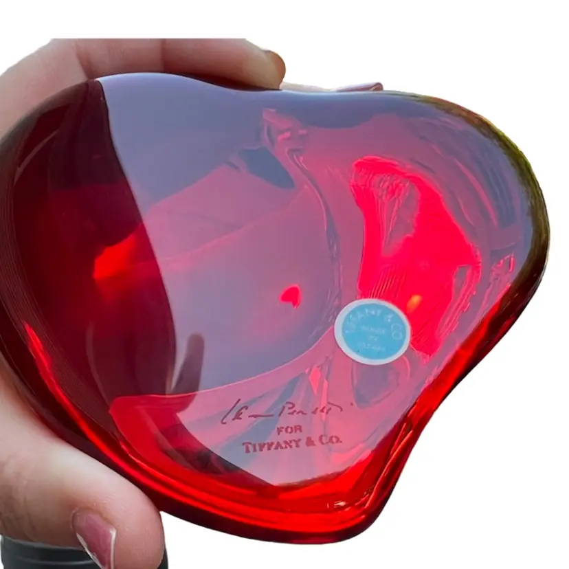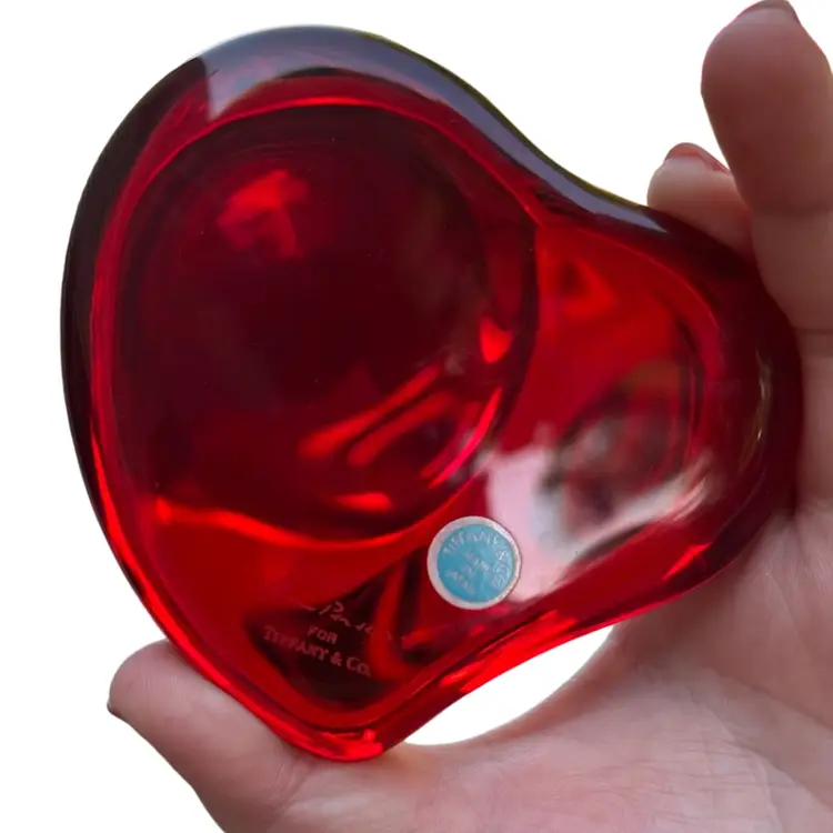 Beautiful red Tiffany and co heart paperweight. Signed and stickered. A few very minor scratches. Wonderful cadmium glow on the back.