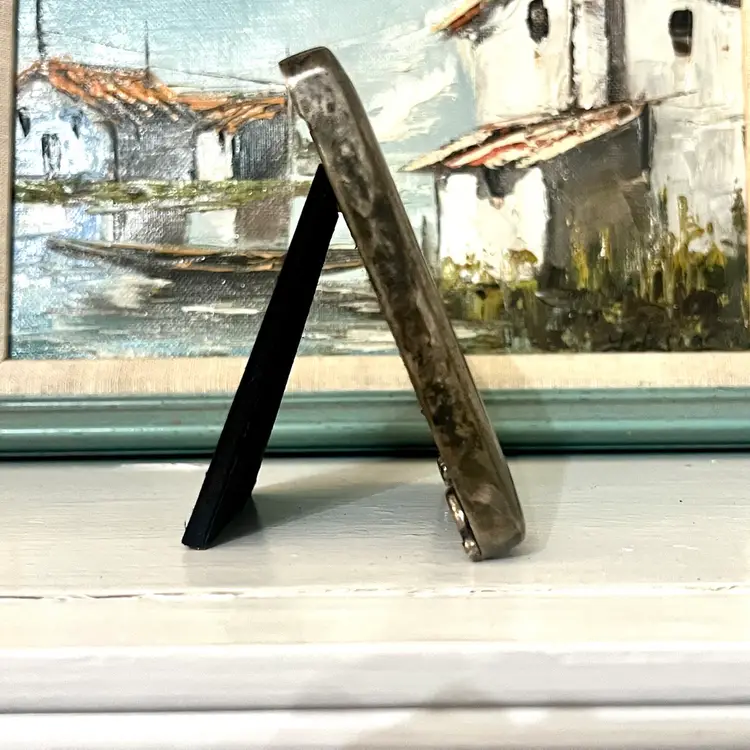 Excellent vintage condition w/ standard patina for its age. I have not polished this frame as some people prefer to keep its natural tarnish / patina, but item can be polished back to its original shine. There are NO personalization or engravings.