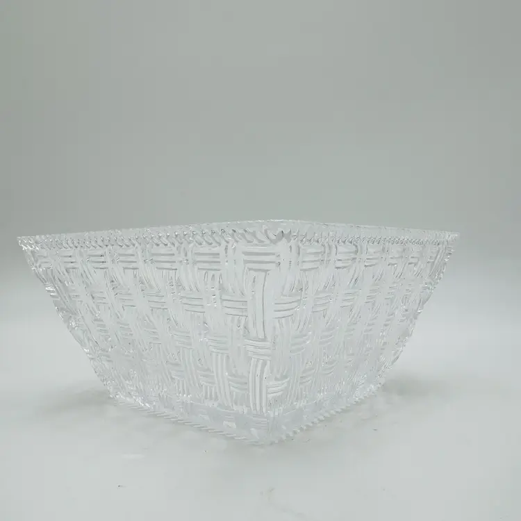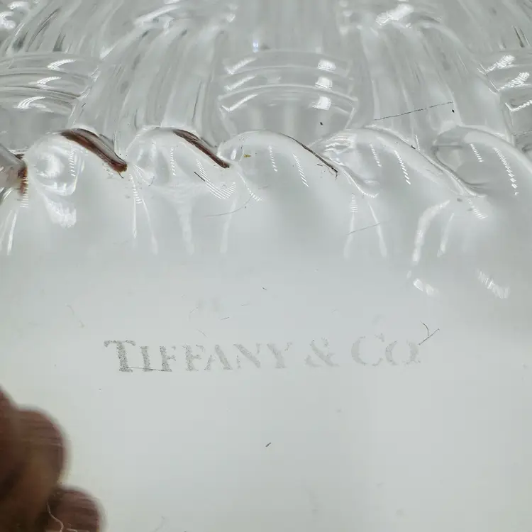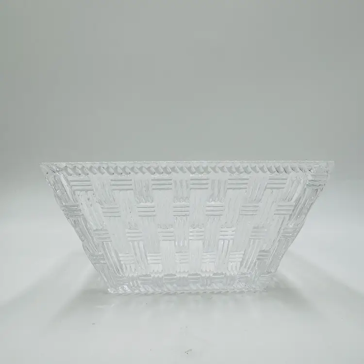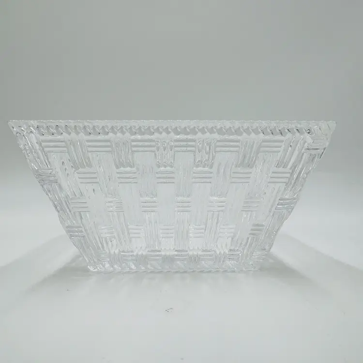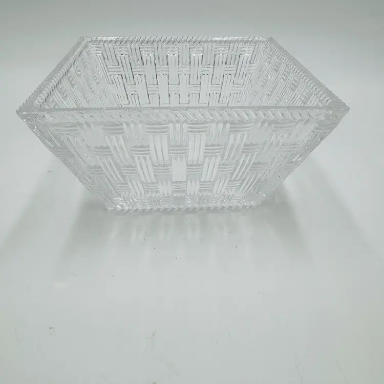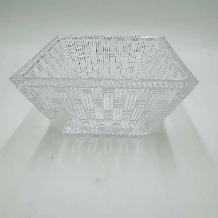 Features: Etched, Decorative Department: Adult Item Width: 6 in Pattern: Woven Basket Item Height: 3 in Number of Items in Set: One Piece Occasion: All Occasions Vintage: Yes Country/Region of Manufacture: Germany Origin: Germany Material: Crystal Shape: Square Finish: Glossy Brand: Tiffany & Co. Style: Contemporary Color: Clear Set Includes: Bowl, Charger Plate Original/Licensed Reproduction: Original Type: Bowl