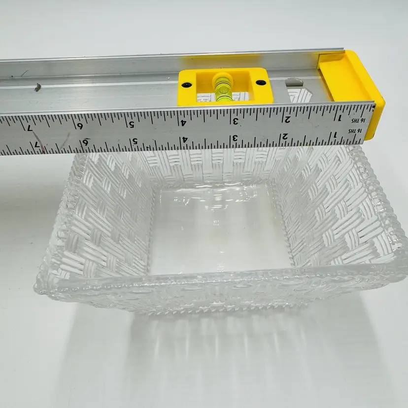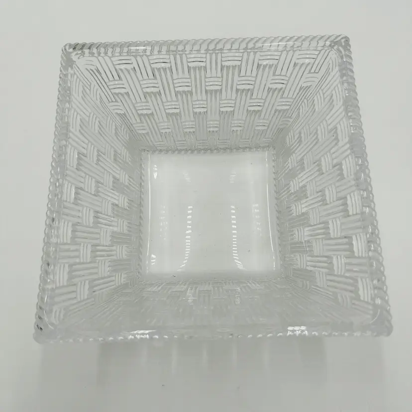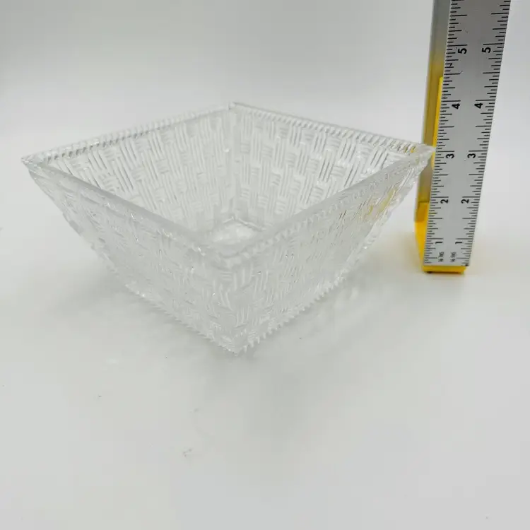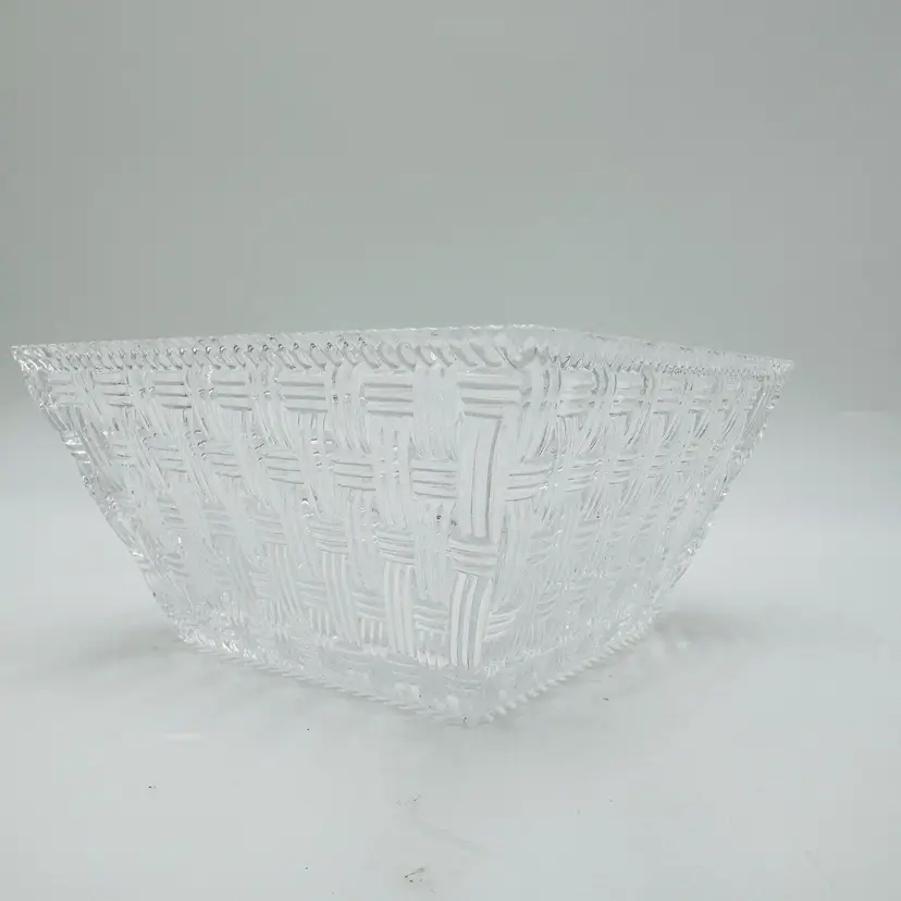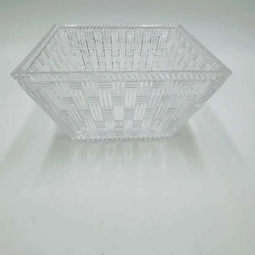 Features: Etched, Decorative Department: Adult Item Width: 6 in Pattern: Woven Basket Item Height: 3 in Number of Items in Set: One Piece Occasion: All Occasions Vintage: Yes Country/Region of Manufacture: Germany Origin: Germany Material: Crystal Shape: Square Finish: Glossy Brand: Tiffany & Co. Style: Contemporary Color: Clear Set Includes: Bowl, Charger Plate Original/Licensed Reproduction: Original Type: Bowl