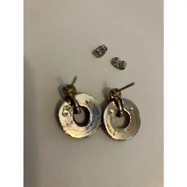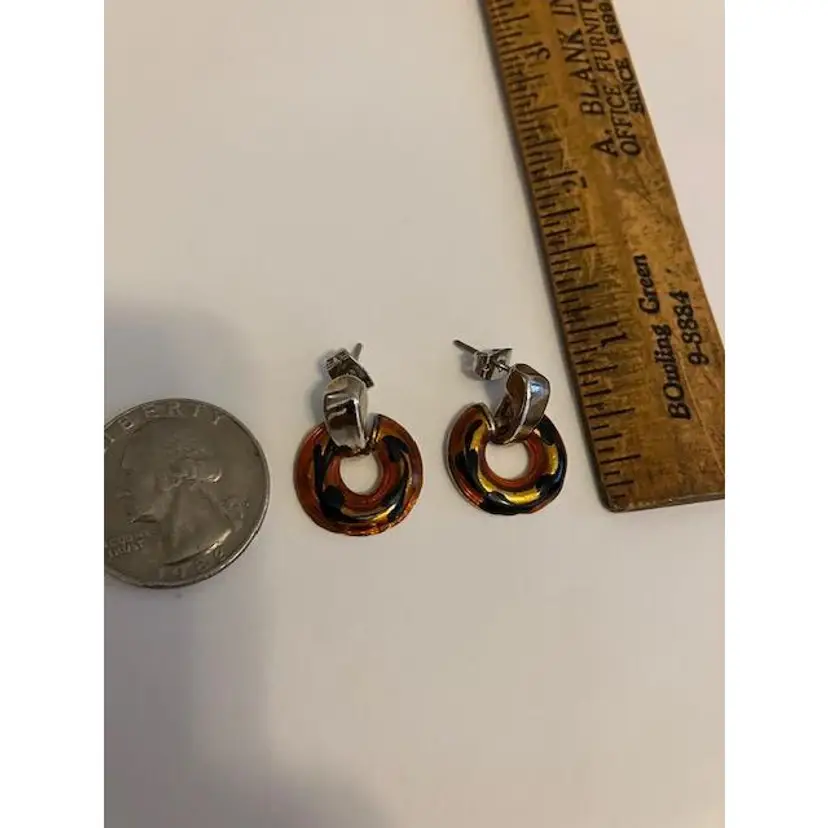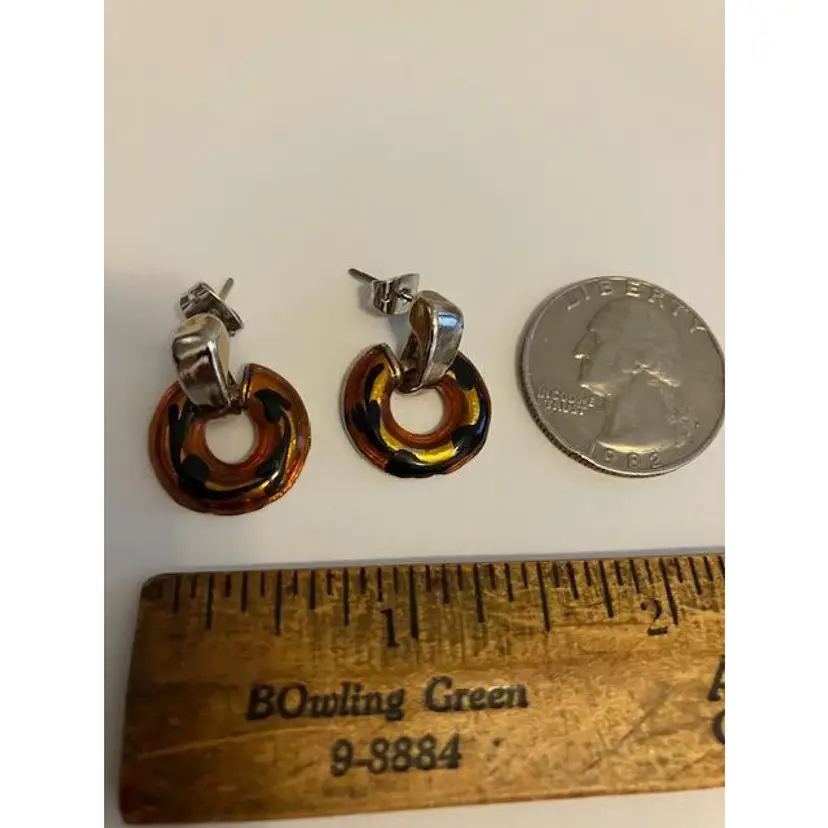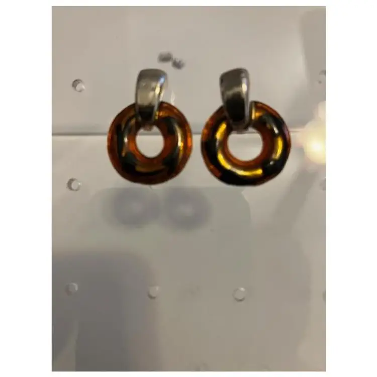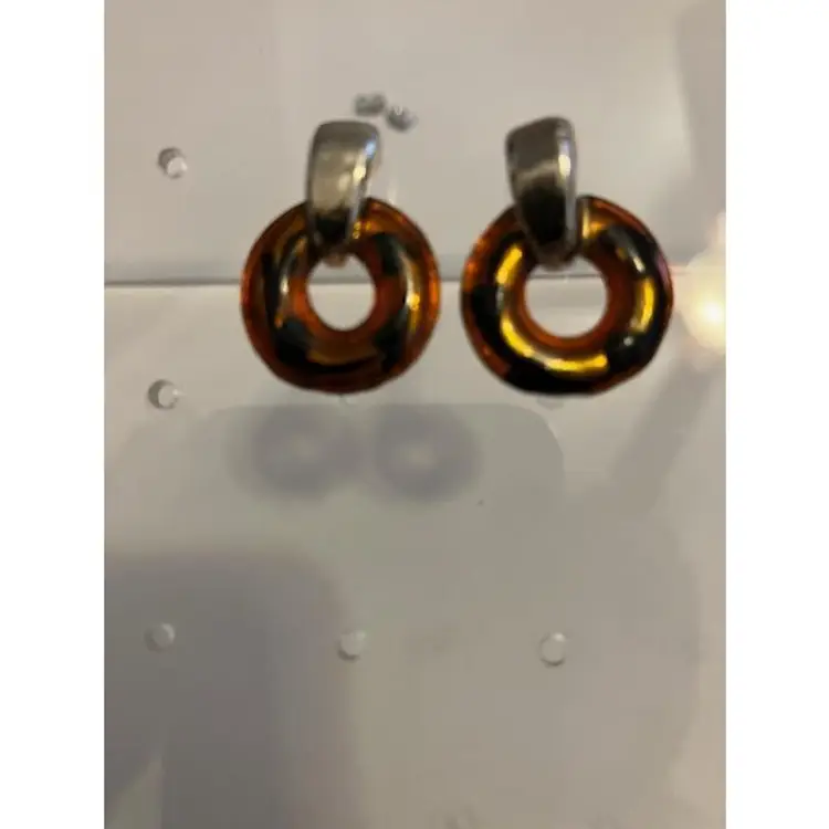 Silver tone articulated tiger eye pierced earrings. Measures 1/2" x 1/2" with a 3/4" drop. Well made, very nice quality.