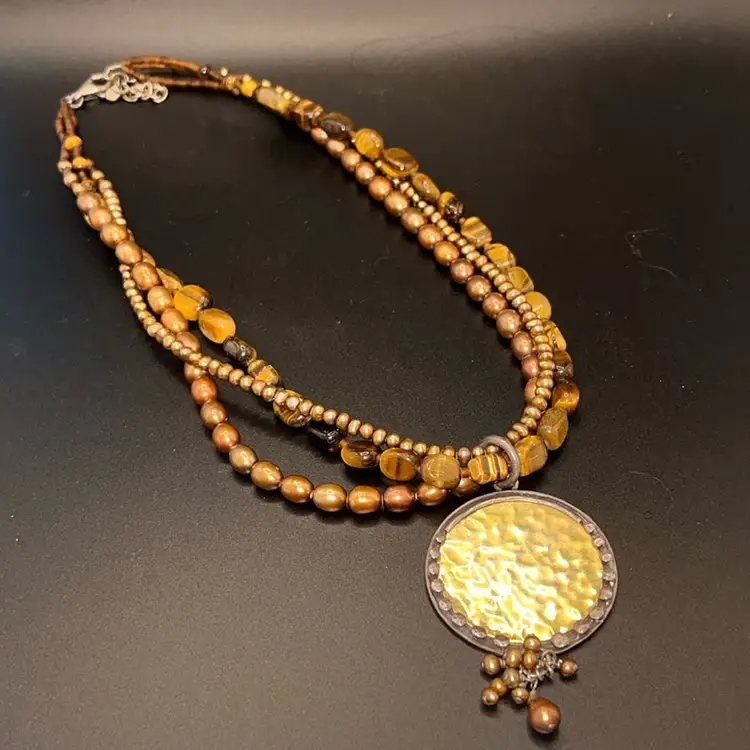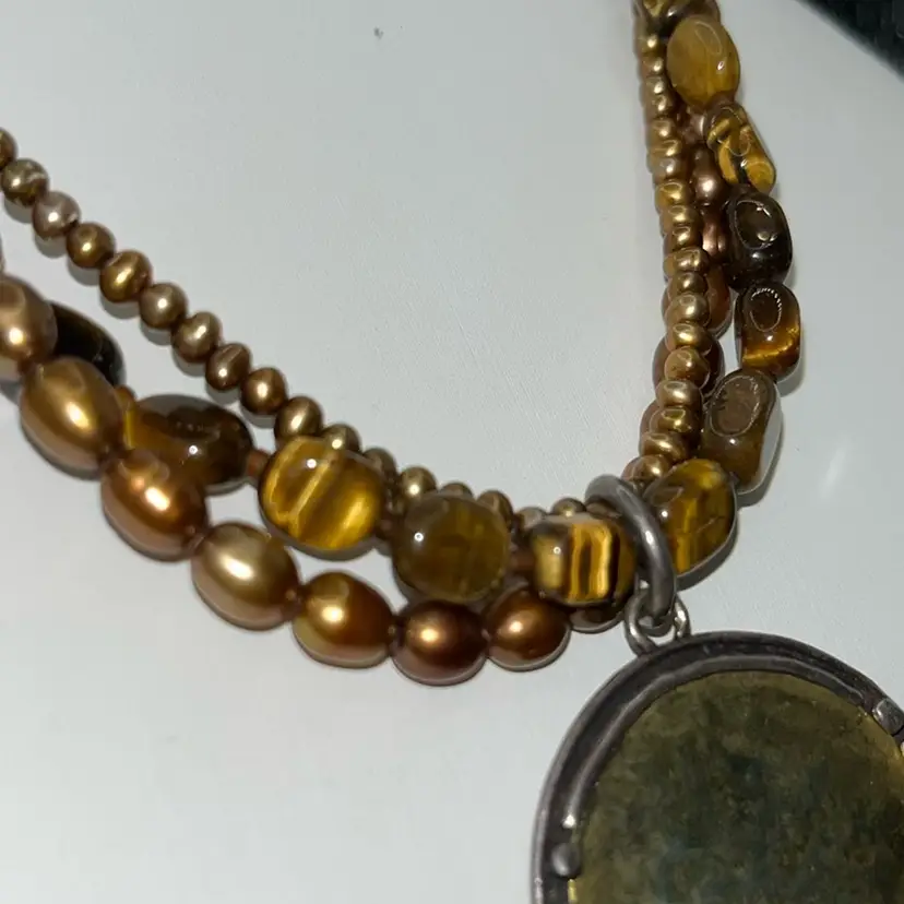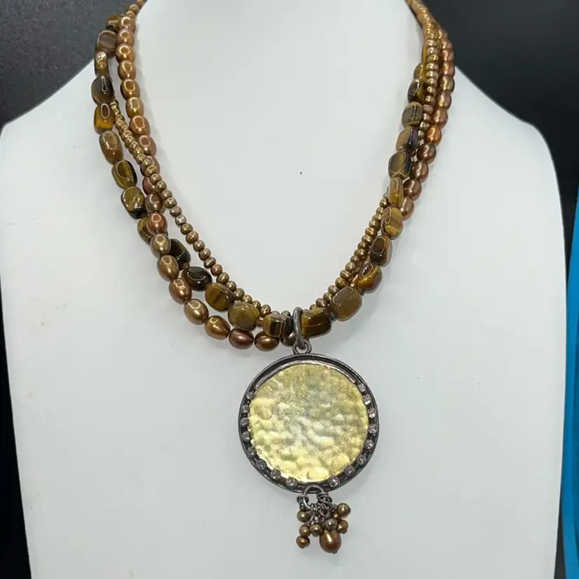 Tiger’s Eye Beaded Necklace with Medallion 18” Long