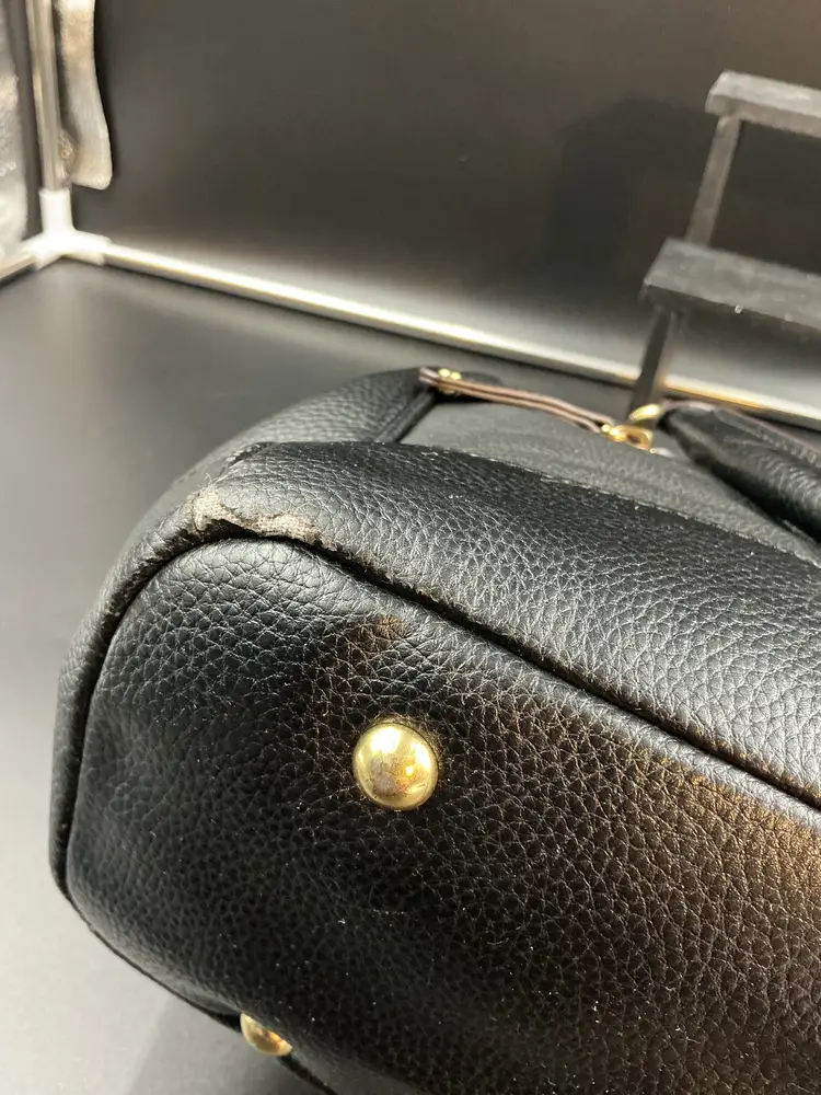 This is a well love and maintained purse. Some wear on 2 corners on bottom. Strap is removable.