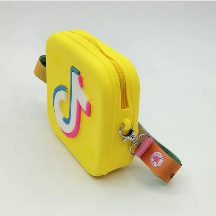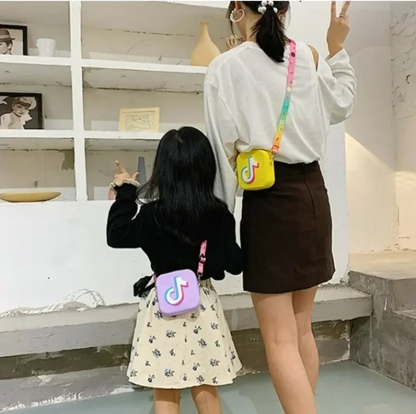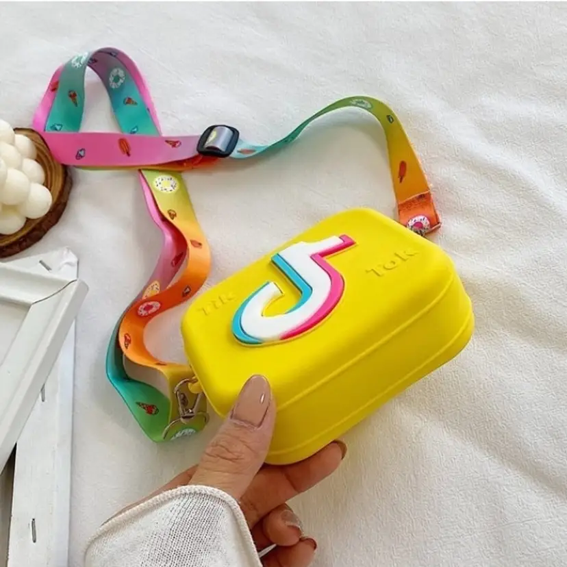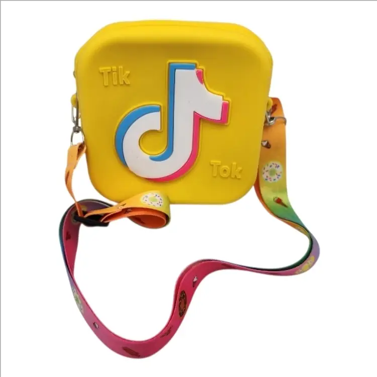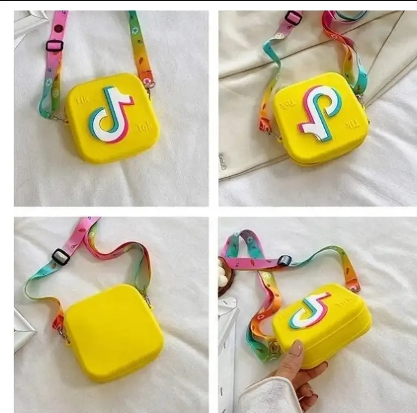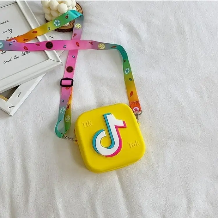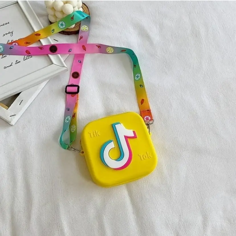 This listing is for a TikTok-themed silicone crossbody purse. It’s a fun, lightweight accessory designed for kids, young fans, and anyone who wants a playful mini bag for daily carry. Features the iconic TikTok logo on the front and includes an attached adjustable strap with a themed pattern.