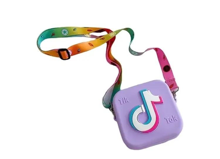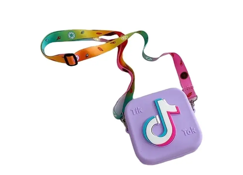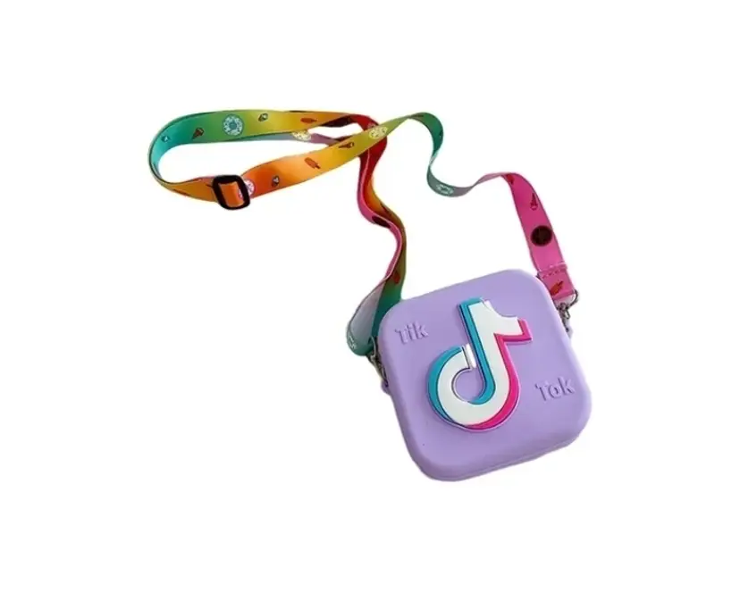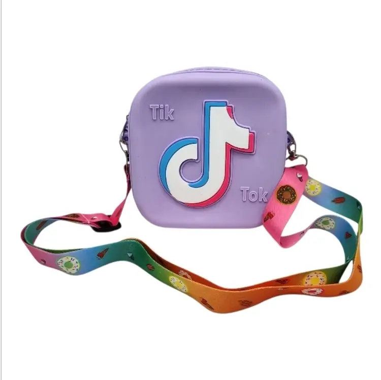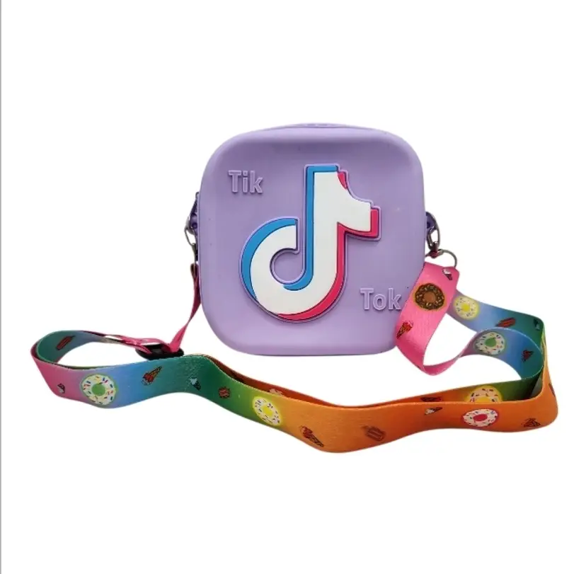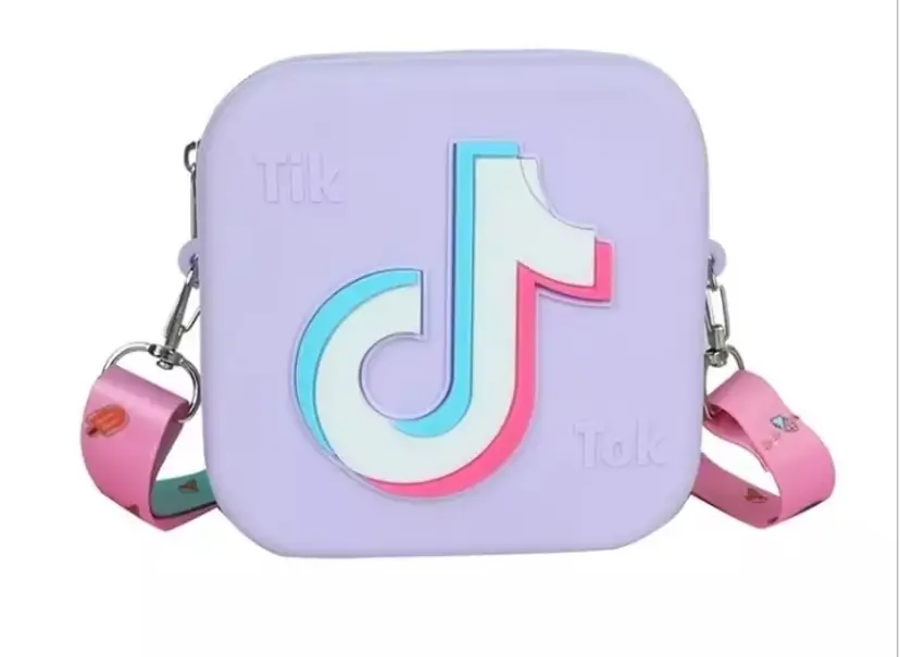 This listing is for a Lavender Purple TikTok-themed silicone crossbody purse. It’s a fun, lightweight accessory designed for kids, young fans, and anyone who wants a playful mini bag for daily carry. Features the iconic TikTok logo on the front and includes an attached adjustable strap with a themed pattern.