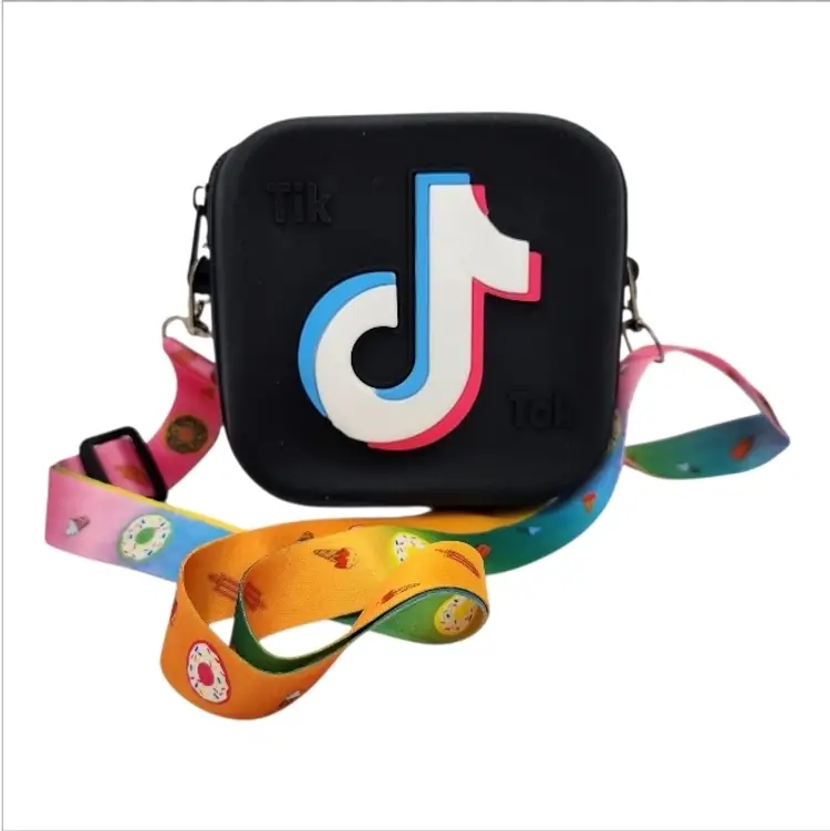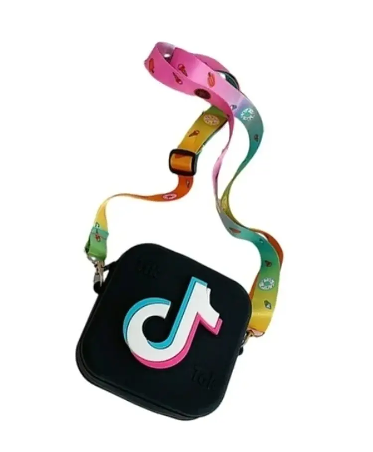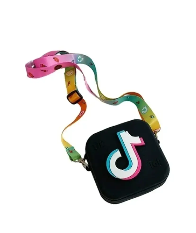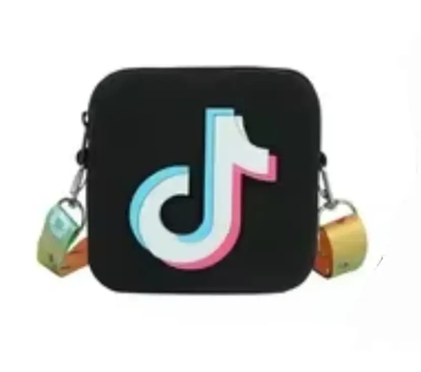 This listing is for a TikTok-themed Black, silicone crossbody purse. It’s a fun, lightweight accessory designed for kids, young fans, and anyone who wants a playful mini bag for daily carry. Features the iconic TikTok logo on the front and includes an attached adjustable strap with a themed pattern.