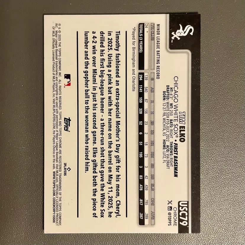 Tim Elko (Chicago White Sox) 2025 Topps Chrome Update Series Rookie Aqua Refractor /199