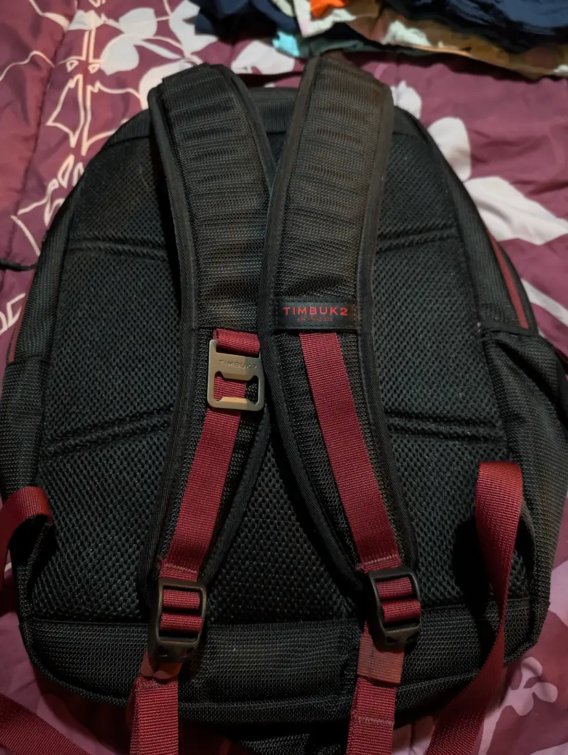 Diablo color way Timbuk2 Parkside backpack, gently used. 17.5" H x 11" W x 5.31" D 20L