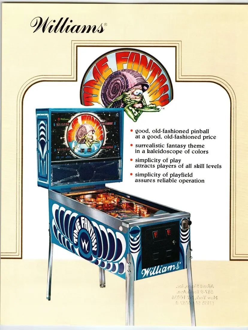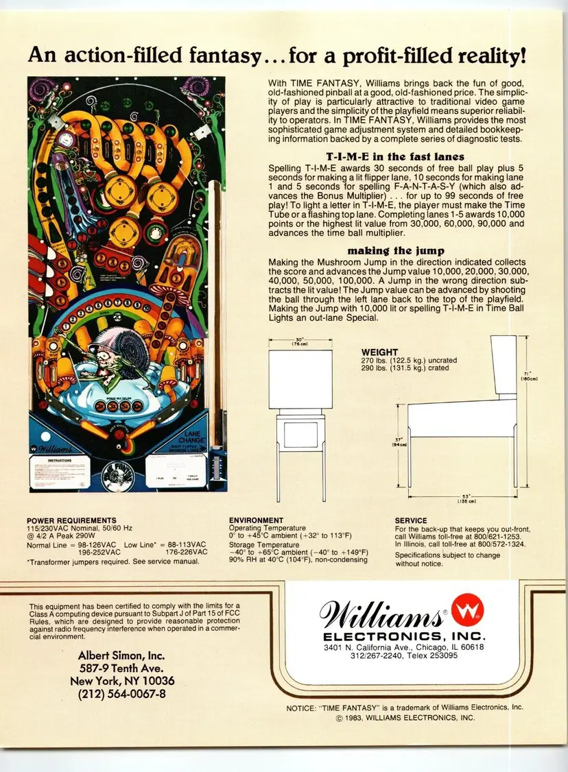 Brand: Williams Year: 1983 Model: Time Fantasy Country/Region of Manufacture: United States Original: Paper Advertising Flyer Modified Item: No Pinball: Flyer