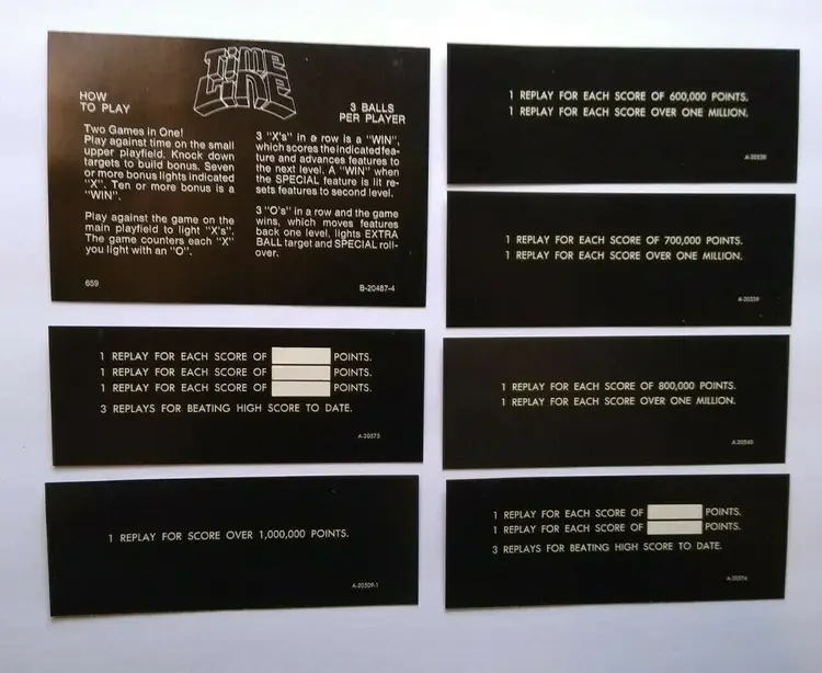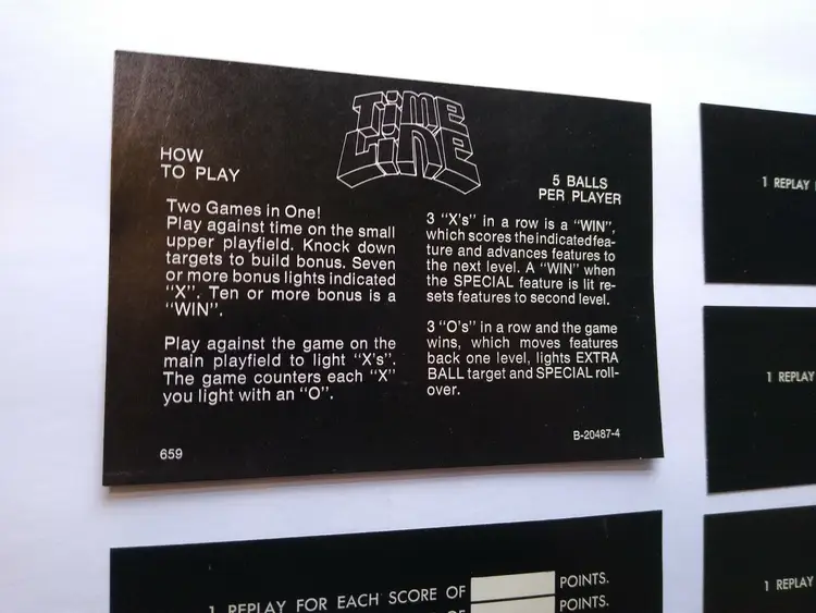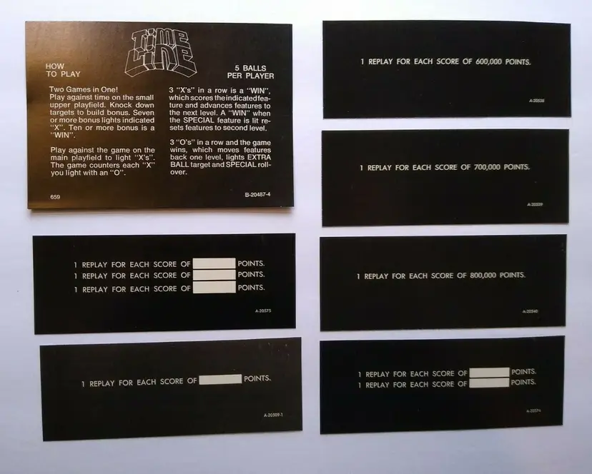 Model: Time Line Pinball: Score/Instruction Cards Modified Item: No Country/Region of Manufacture: United States Year: 1980 Brand: Gottlieb