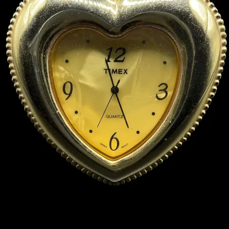 Charming heart-shaped design with a classic Timex quartz movement. Perfect for adding a touch of elegance to any space. a4