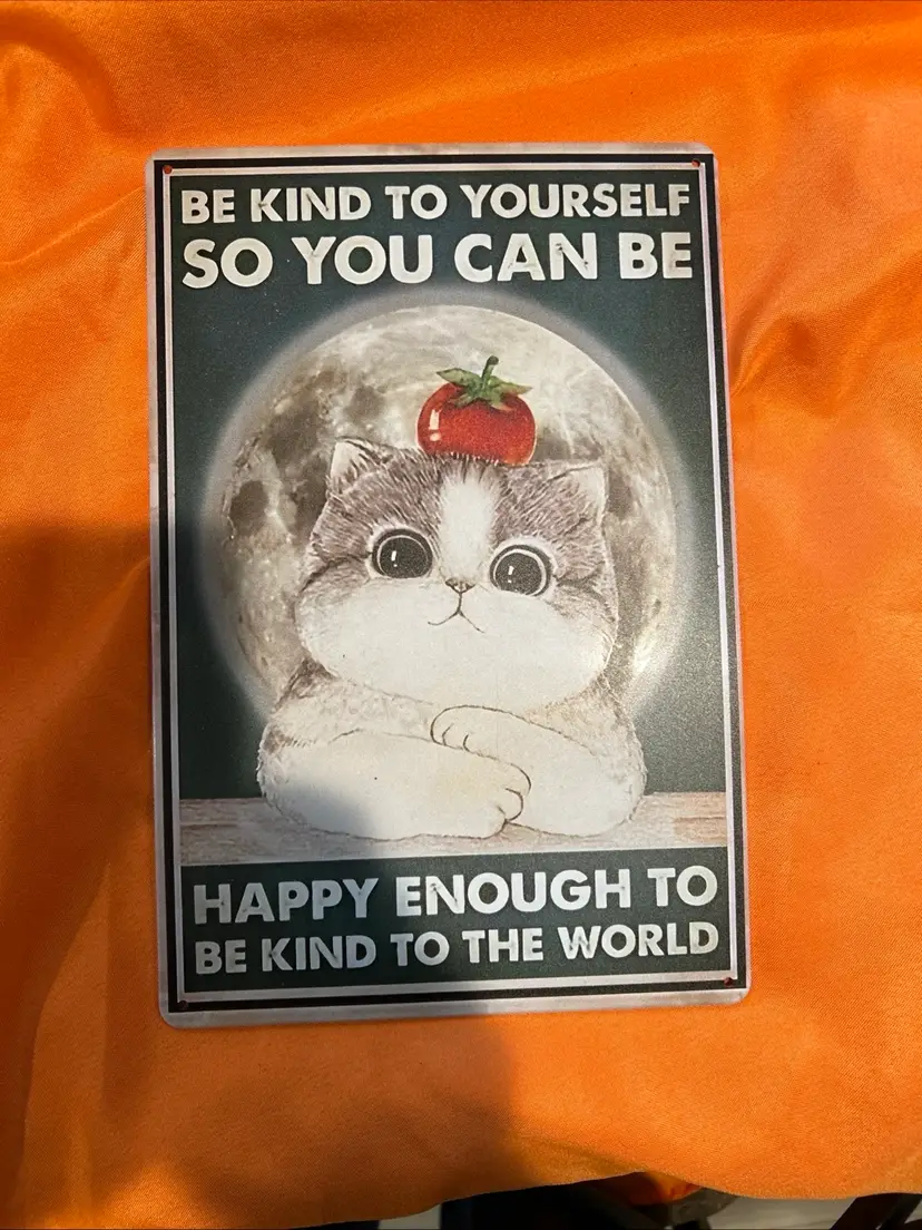 Tin Metal Sign Plate Cat Drink Coffee Enjoy Music Wall Decor 8x12