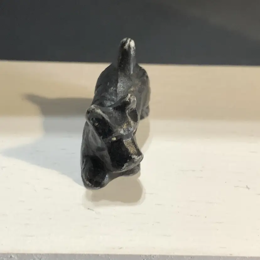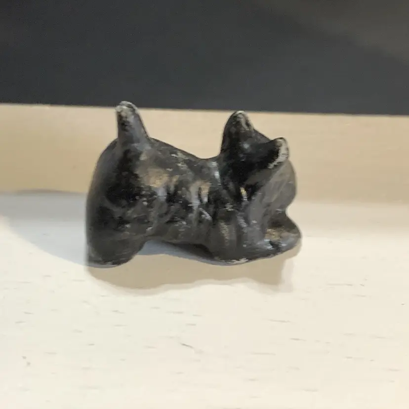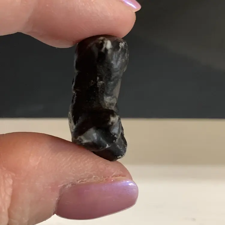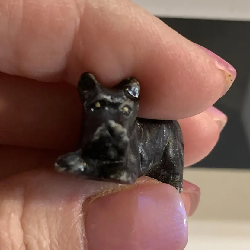 So tiny and cute!. No chips or cracks. Measures 1 inch across, 3/8 inch wide and 3/4 inch tall. Weighs 1 ounce.