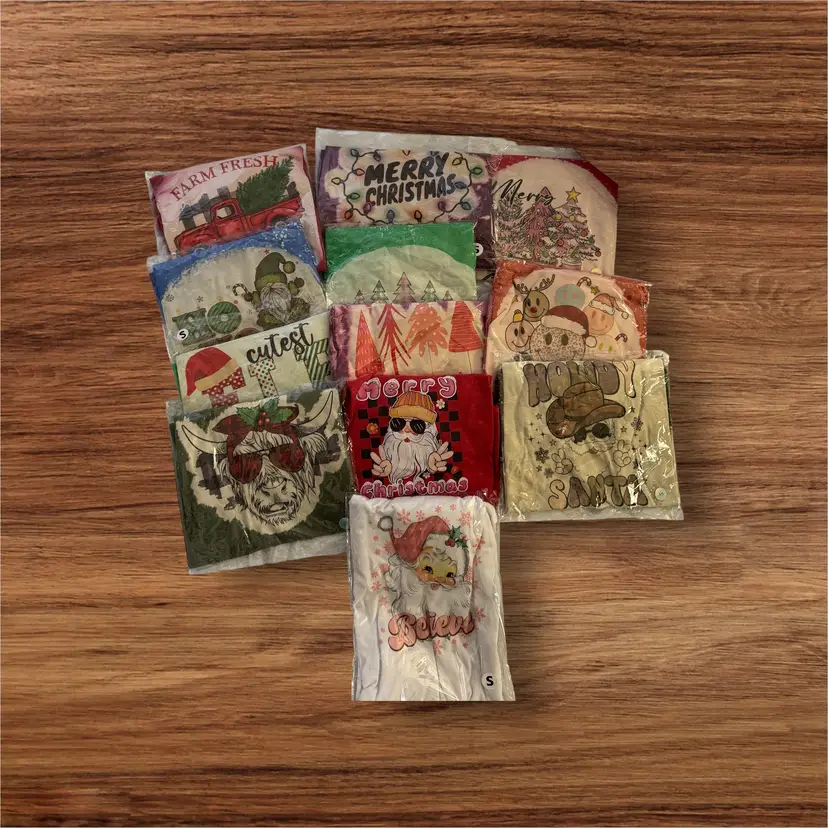"Size Small, Big Holiday Deal! Snag adorable Christmas tees in size S before they disappear – limited stock, clearance pricing!"