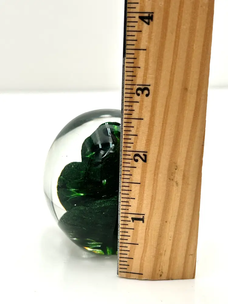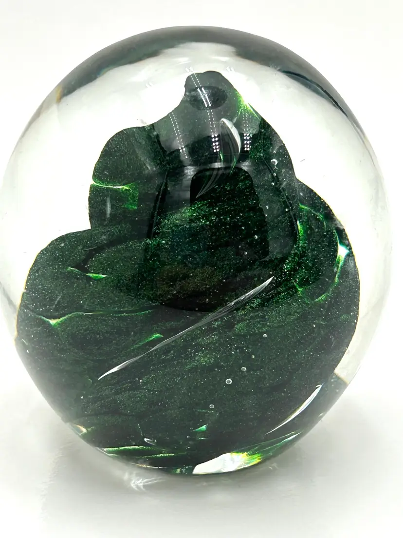 Titan Art Glass 1997 Sparkly Green Swirl Paperweight