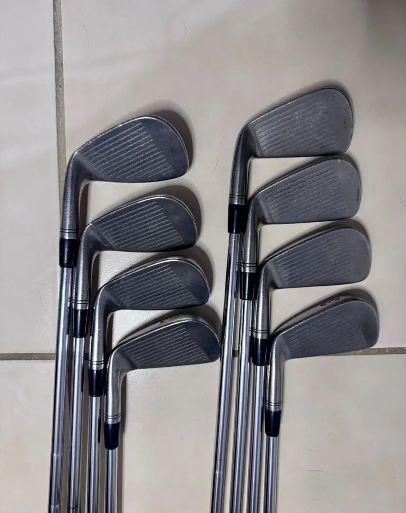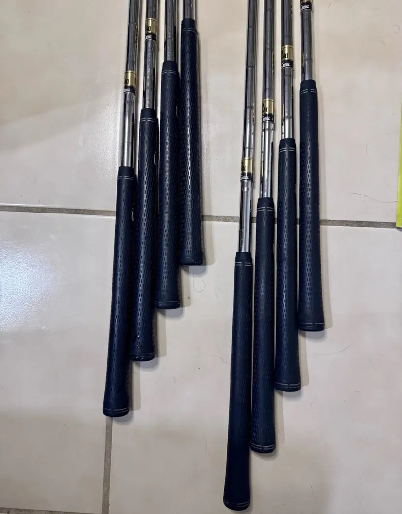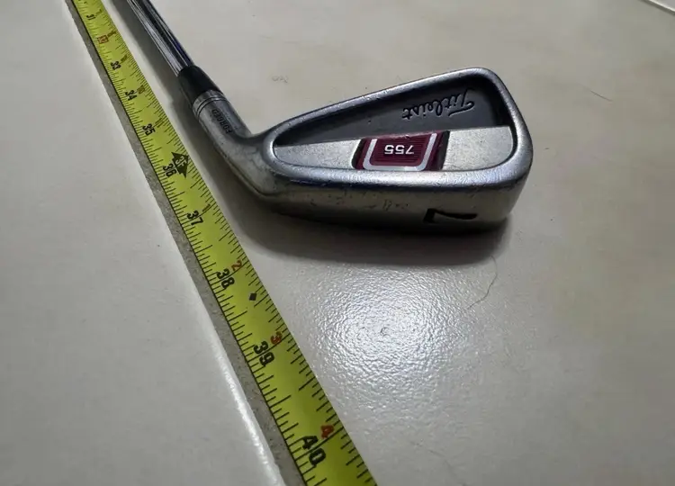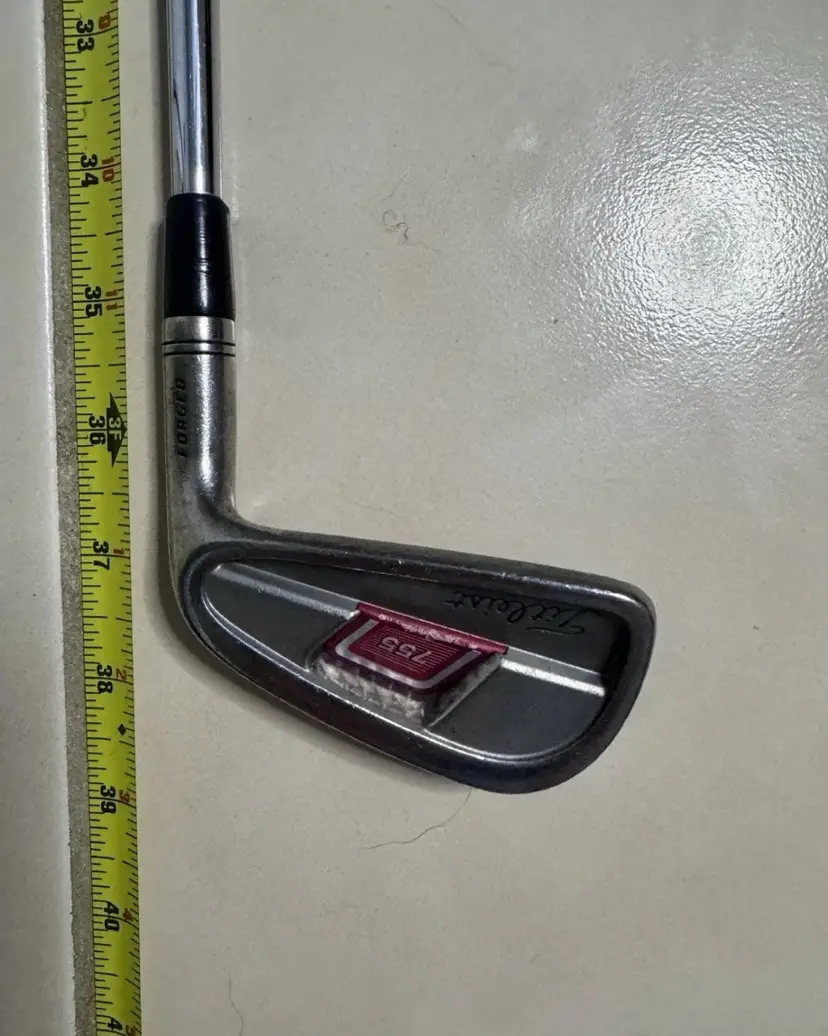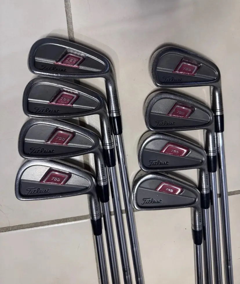 Right handed Titleist 755 Forged Iron Set features a set makeup of 3-PW with stiff flex Dynamic Gold S300 steel shafts. The 7 iron has a length of 37.5”