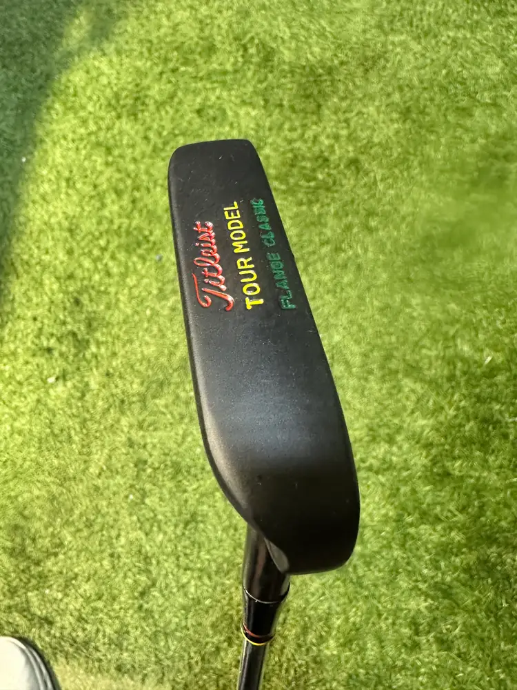 This beautifully restored Titleist Tour Model Flange Classic is a true blend of performance and style. Professionally finished in a matte black Cerakote, this putter features an Augusta-inspired paint fill — red Titleist script, yellow TOUR MODEL, and green FLANGE CLASSIC — a subtle tribute to golf’s most iconic major.