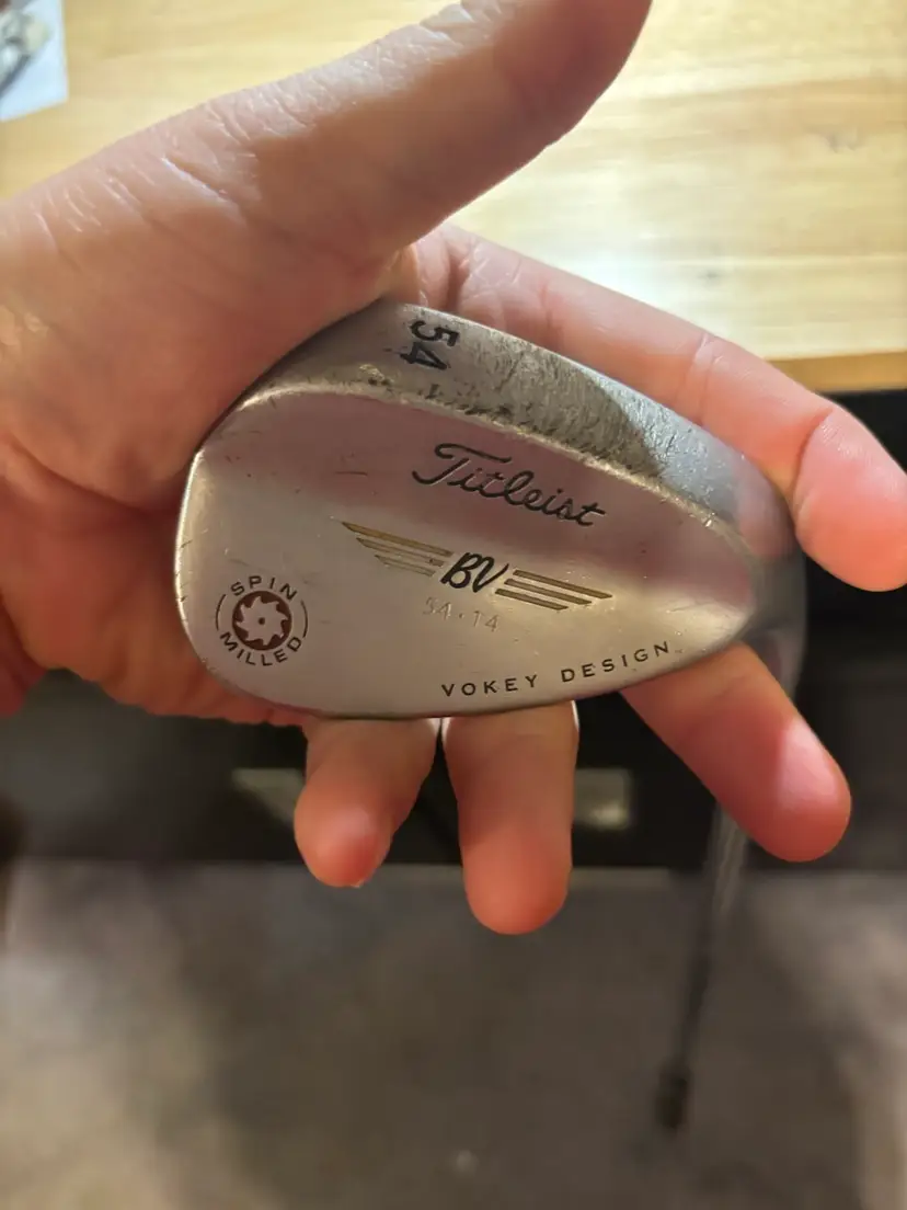 Titleist Vokey Spin Milled Wedge Set 54* 14 58* 08 Mens RH. Steel shafts. New Champkey WRAP-Y Rubber Oversized Grips The ferrule on the 54 has some separation. See pics for condition. OBO.