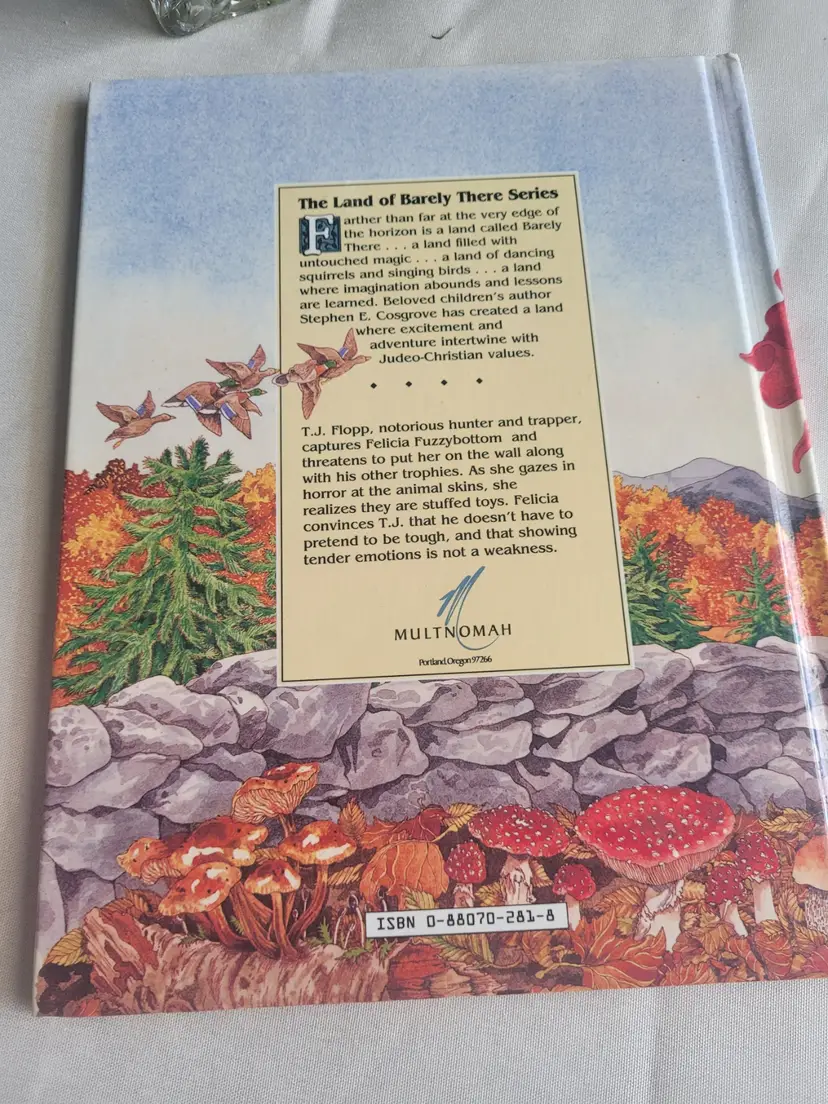 This is an oversized story book written by Steven Cosgrove of SERINDIPITY fame. It tells the story of T.J. Flopp as he dwells in the Land of Barely there. A magical place where the Squirrels dance and the birds sing. A land in which all things teach a lesson.