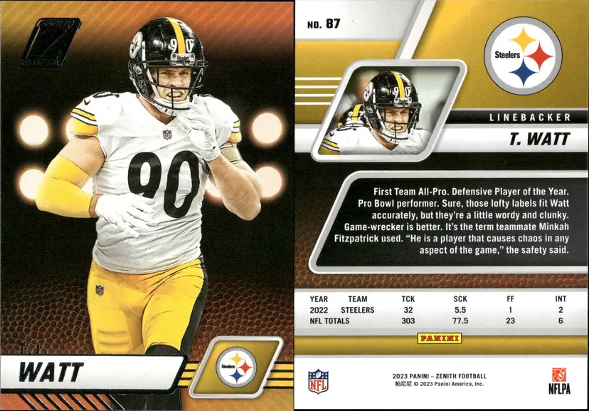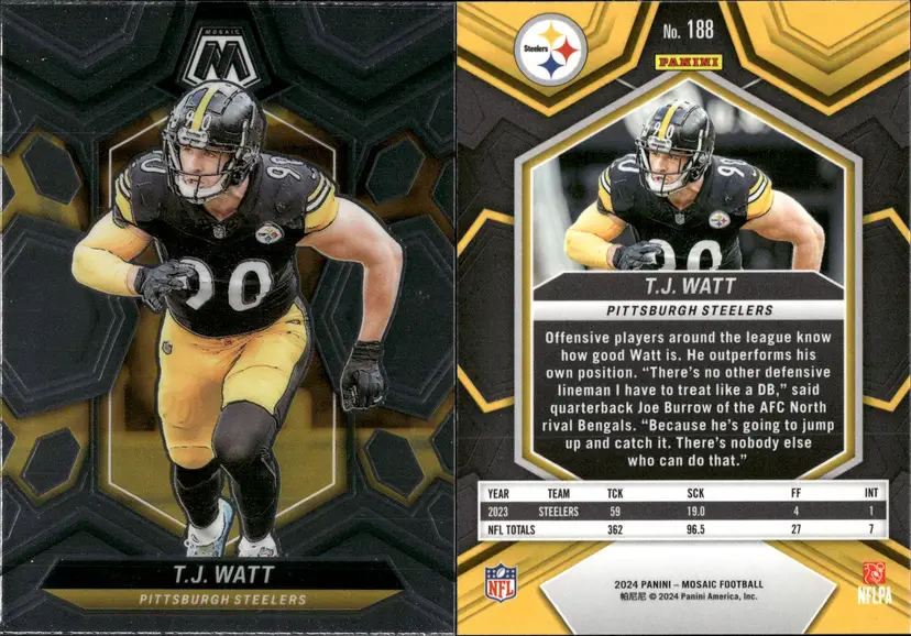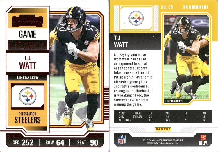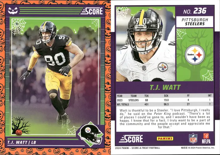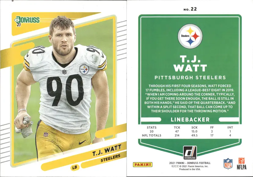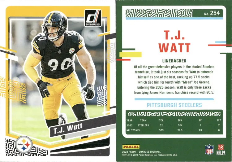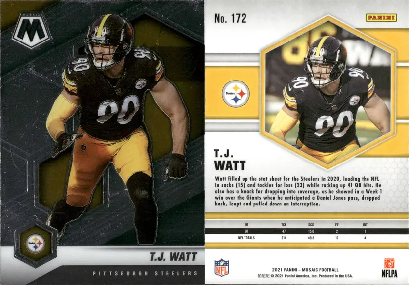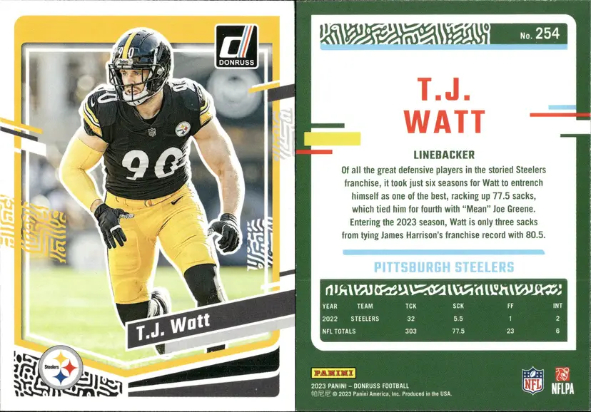 T.J. Watt Lot of 16 Football Cards Pittsburgh Steelers This lot contains 16 Football Cards of the Badger/ Steelers Legend