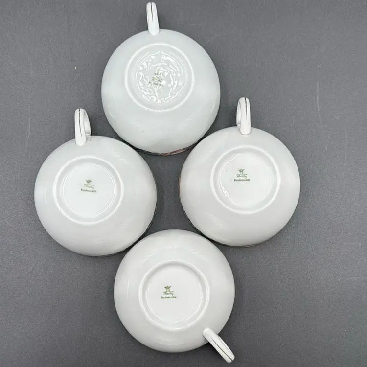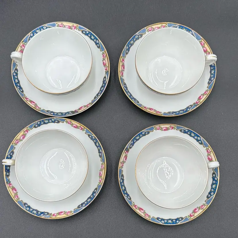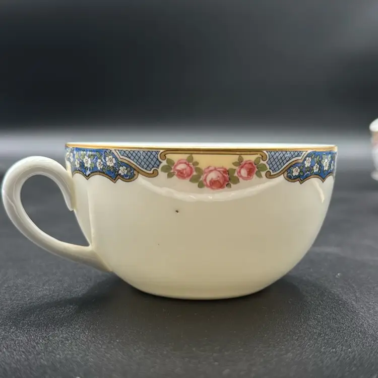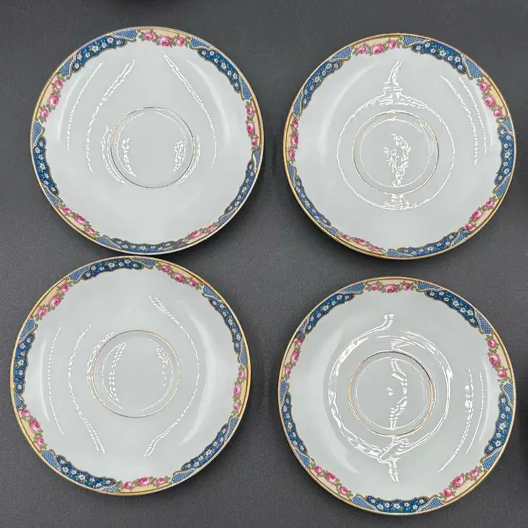 Three roses pattern. Used, very clean. Most of the gold rims are intact. Some flaws in the glaze (see last photo)