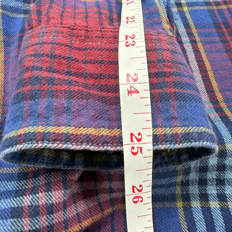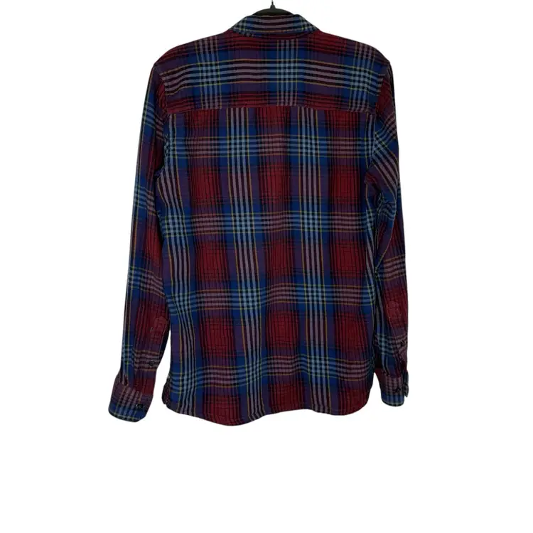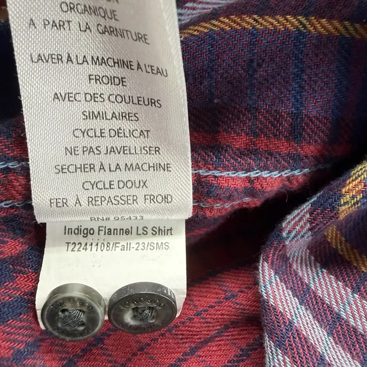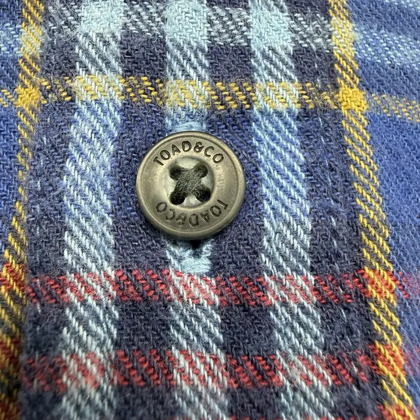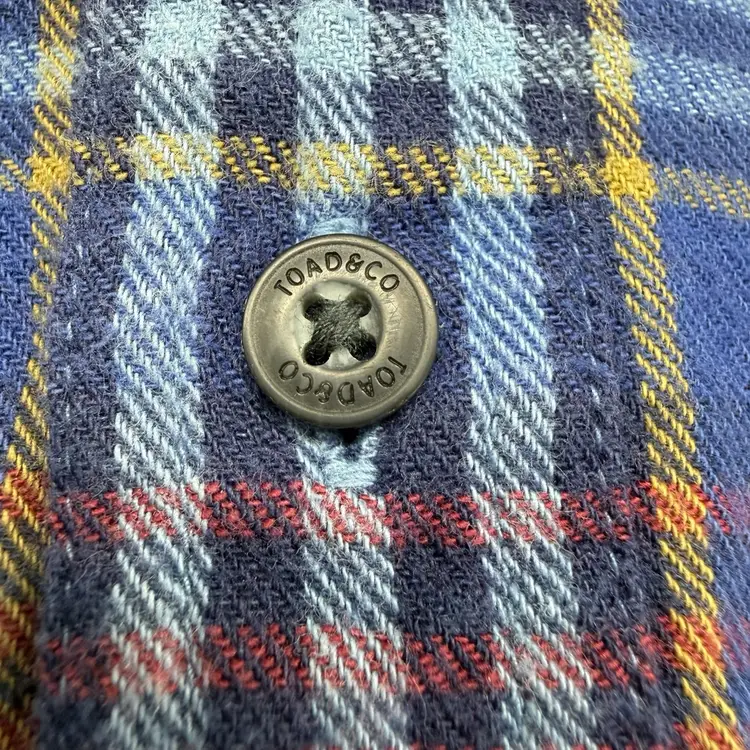 The Toad&Co Indigo Flannel Long Sleeve Button Down Plaid Shirt in size M is a versatile and stylish addition to any man's wardrobe. Made from 100% organic cotton fabric, this shirt features a classic collared neckline, long sleeves, and a button closure. The multicolor plaid pattern adds a touch of outdoor charm, making it perfect for casual or travel occasions. With its breathable and lightweight design, this shirt is easy to care for and suitable for all seasons. The brand's logo accents add a subtle yet stylish detail to this timeless and classic piece.
