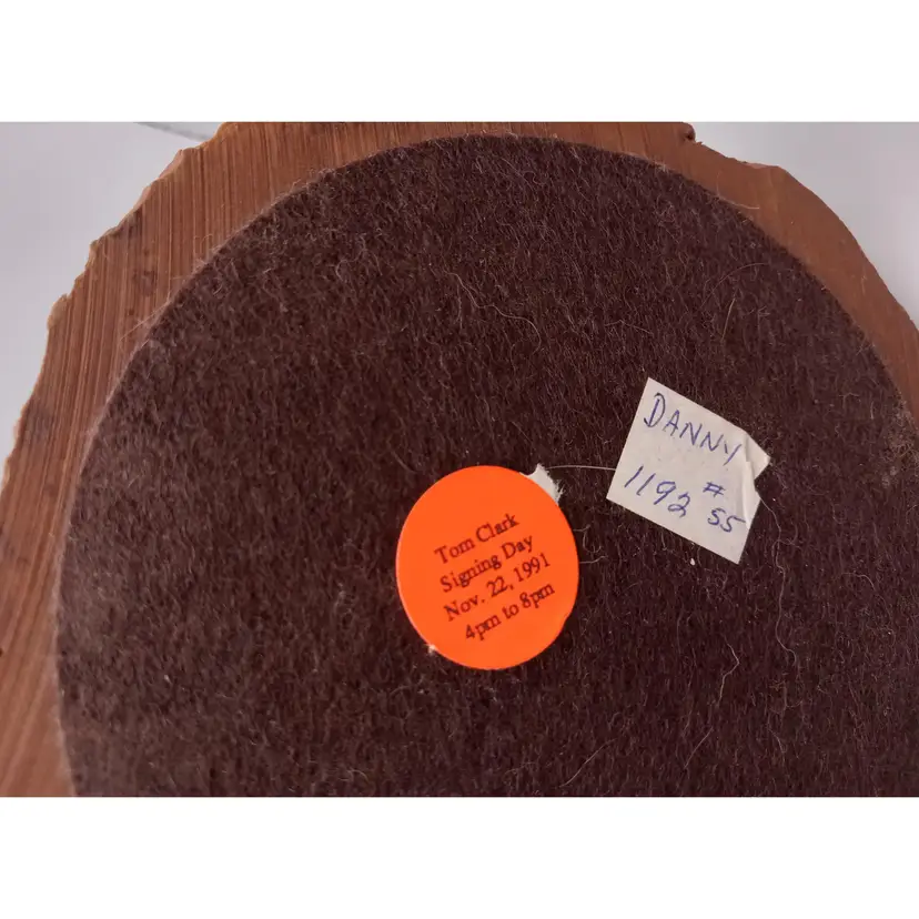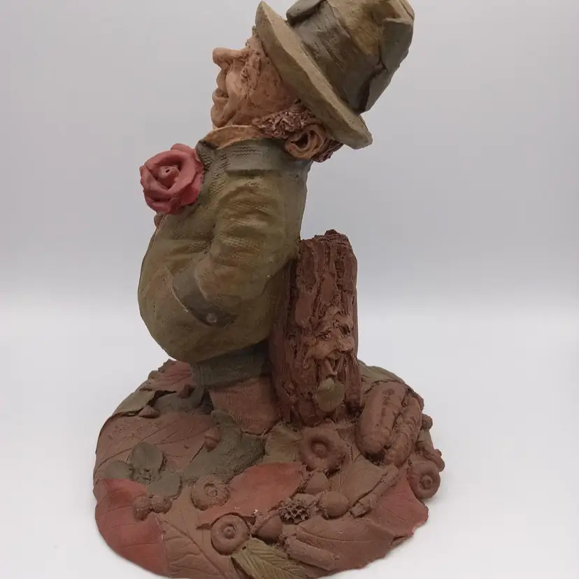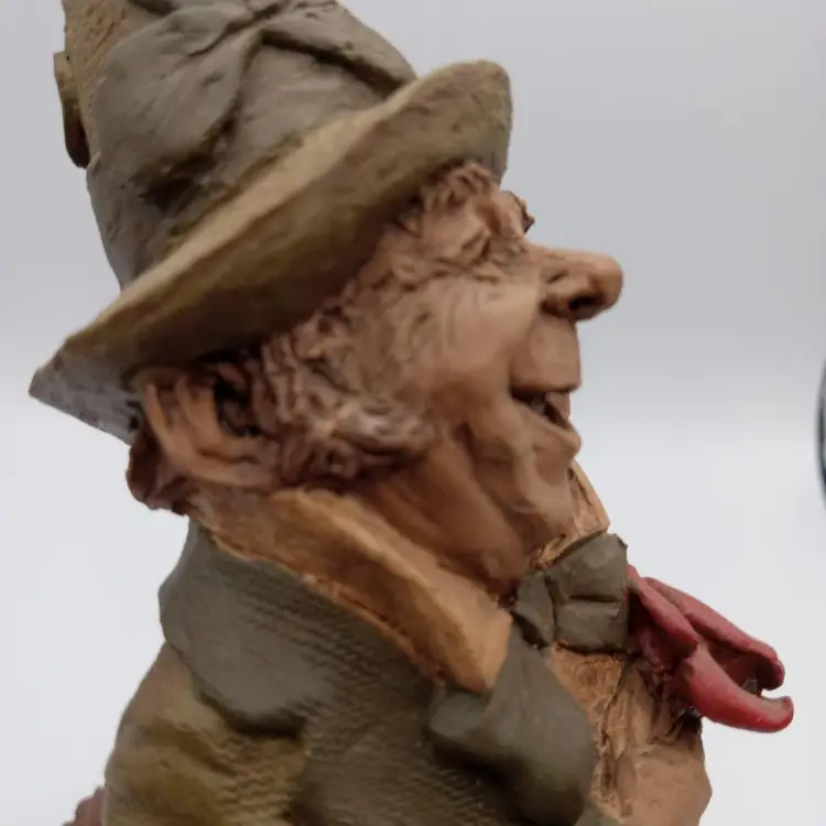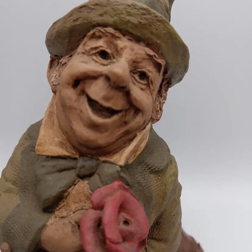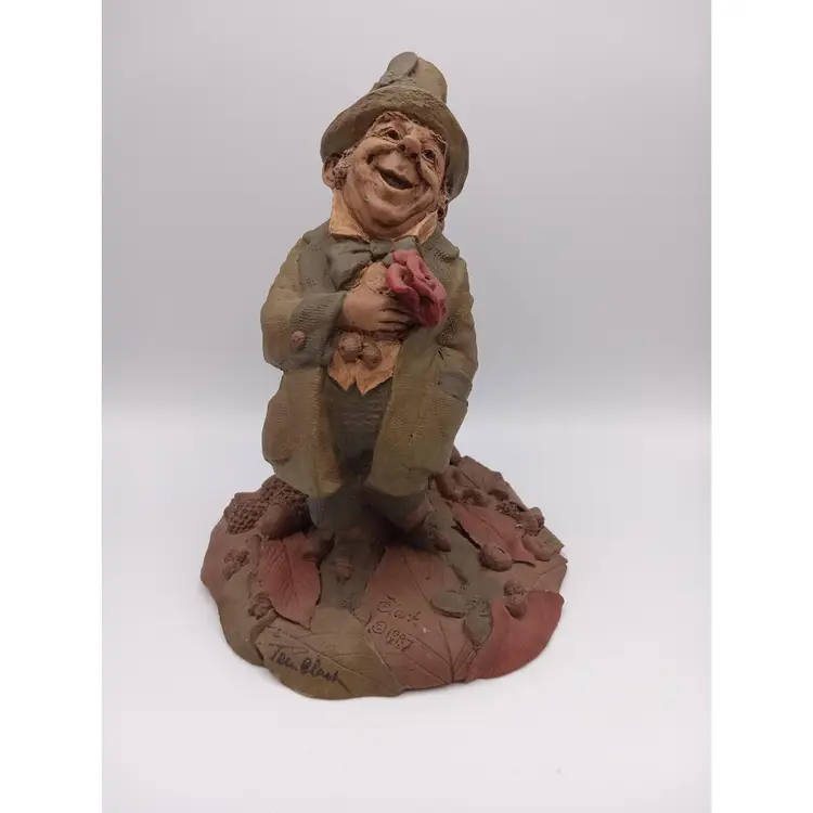 This delightful Tom Clark Figurine from 1981 will delight everyone. He is Made in the USA of Pecan Resin and has the artists' signature in ink and imprinted. He has 4 H's imprinted on his 4 leaf clover and a coin in his pocket. He stands 5 1/2 inches tall and is 4 1/2 inches in diameter. He is a smiling fellow and would be a wonderful addition to your collection.