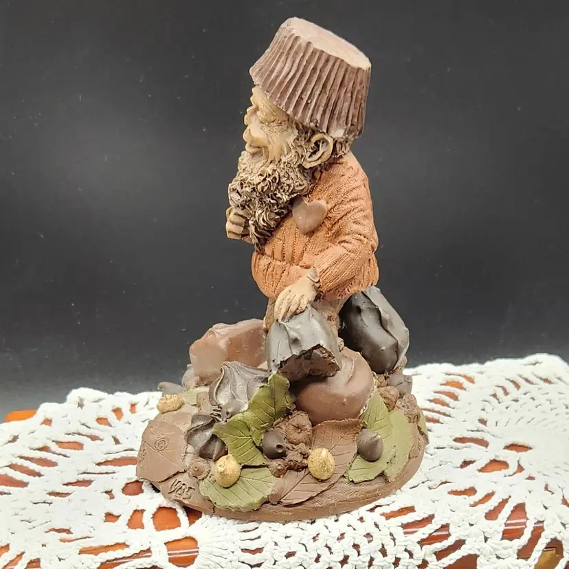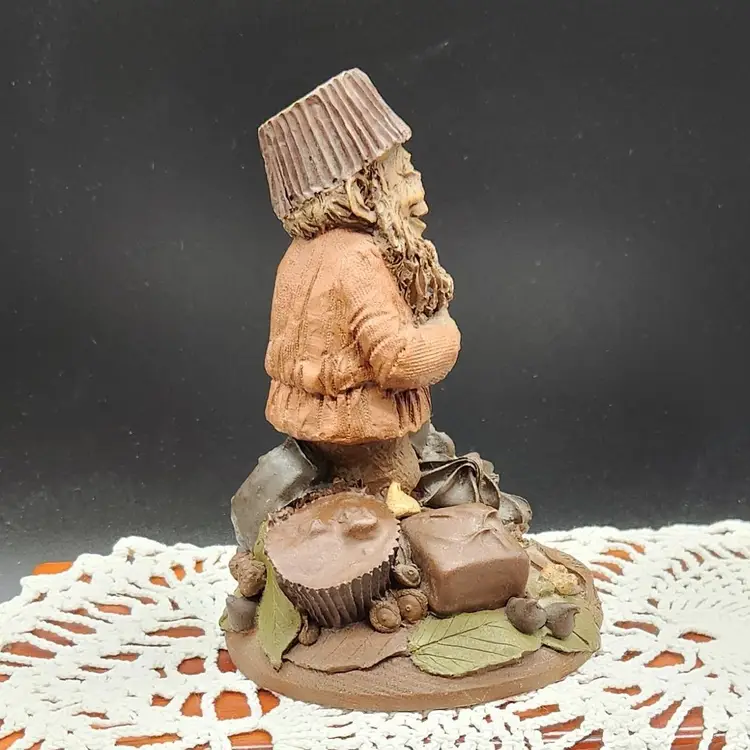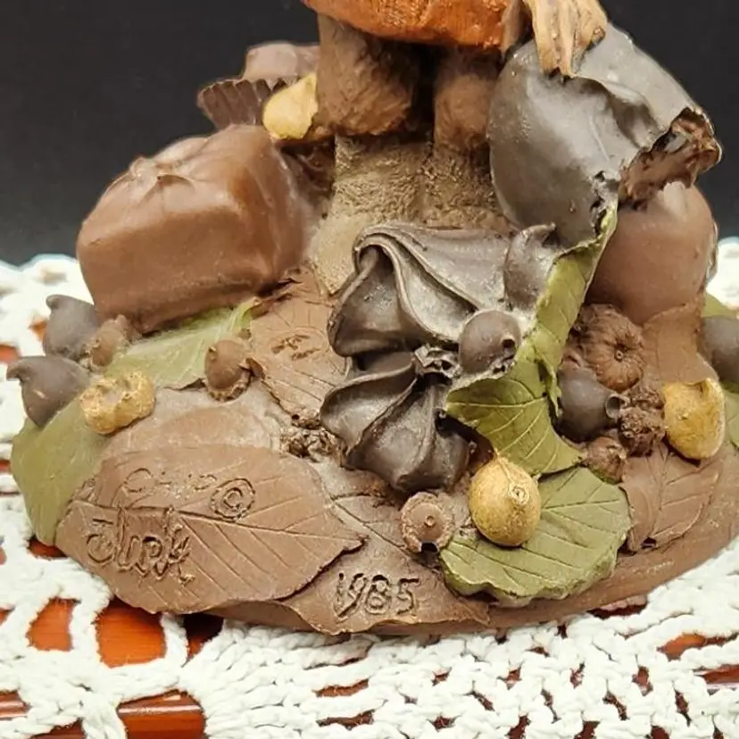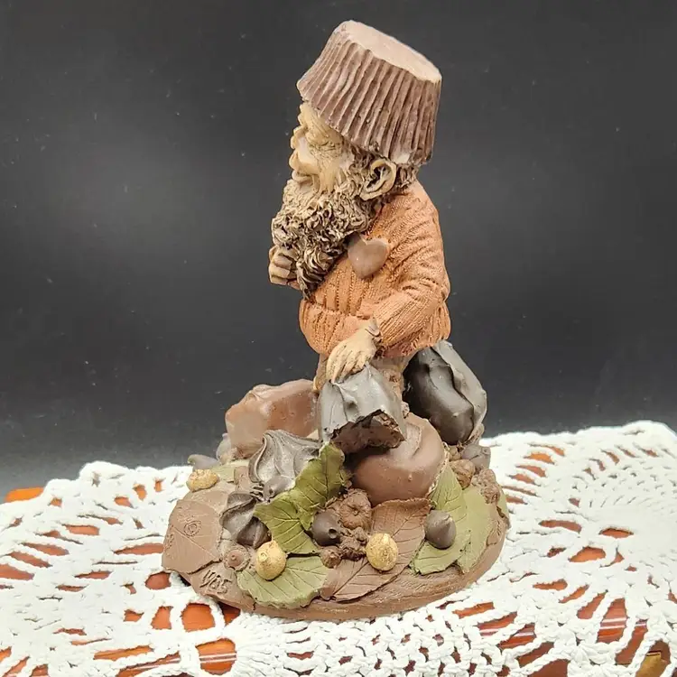 4.5 in H. No chips or cracks. This charming Tom Clark gnome figurine from 1985 features a gnome surrounded by gifts. Perfect for collectors and fans of whimsical decor.
