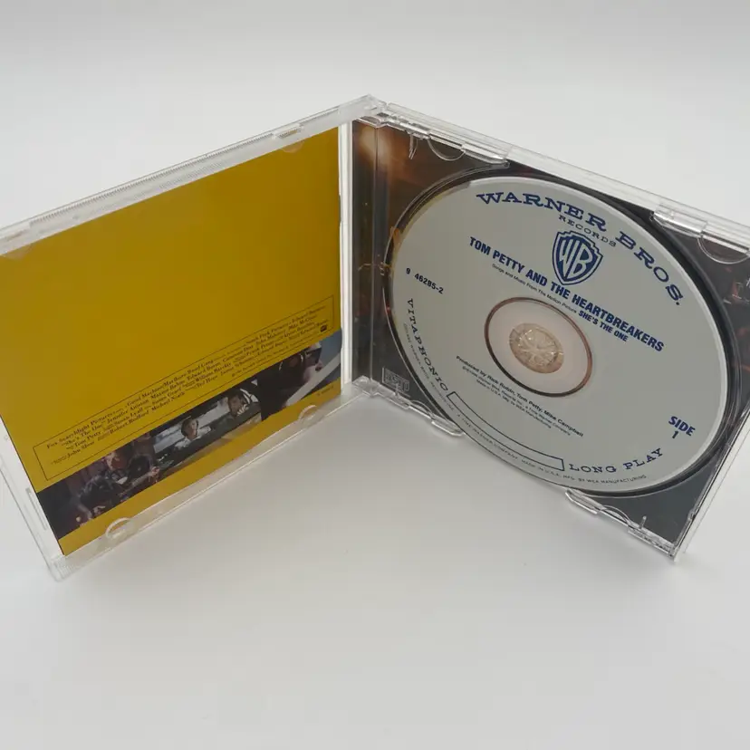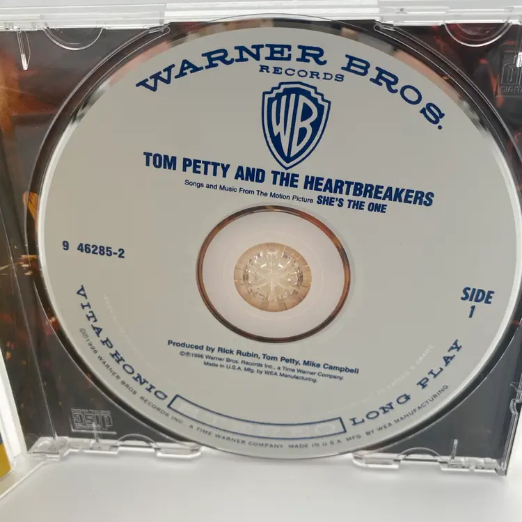 You are purchasing one She's the One Soundtrack CD by Tom Petty and the Heartbreakers with Warner Brothers from 1996. This CD is in overall great condition. No rips or stains on the inlay. Disc is in great condition with no notable scratching. Tested working without issues. See final image for some faint cracking on the back of the case.