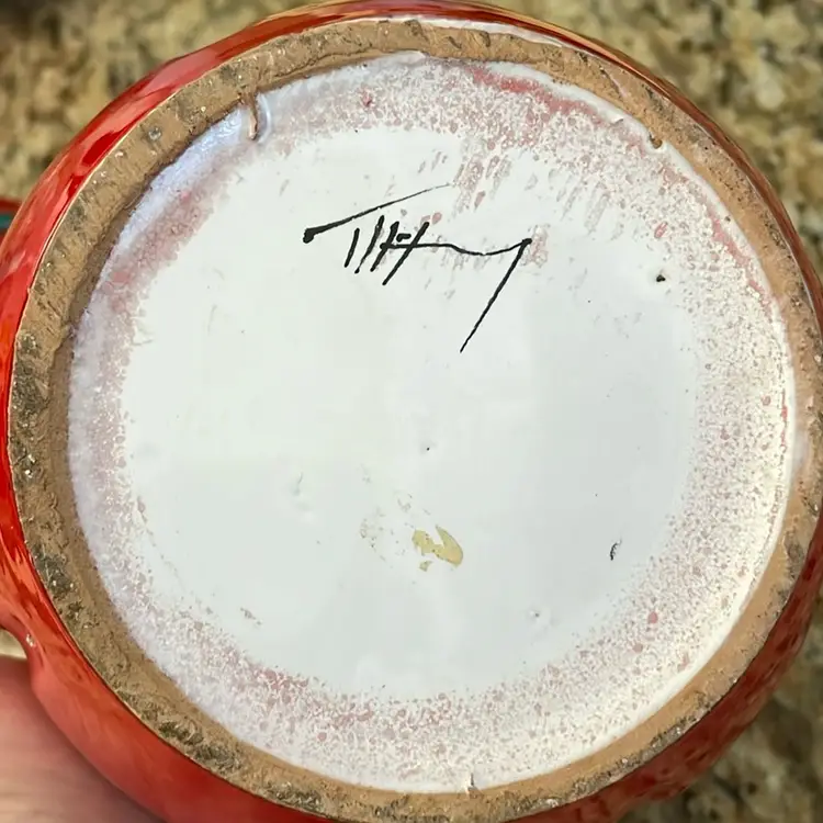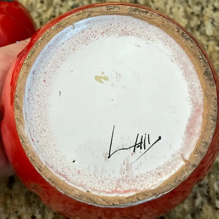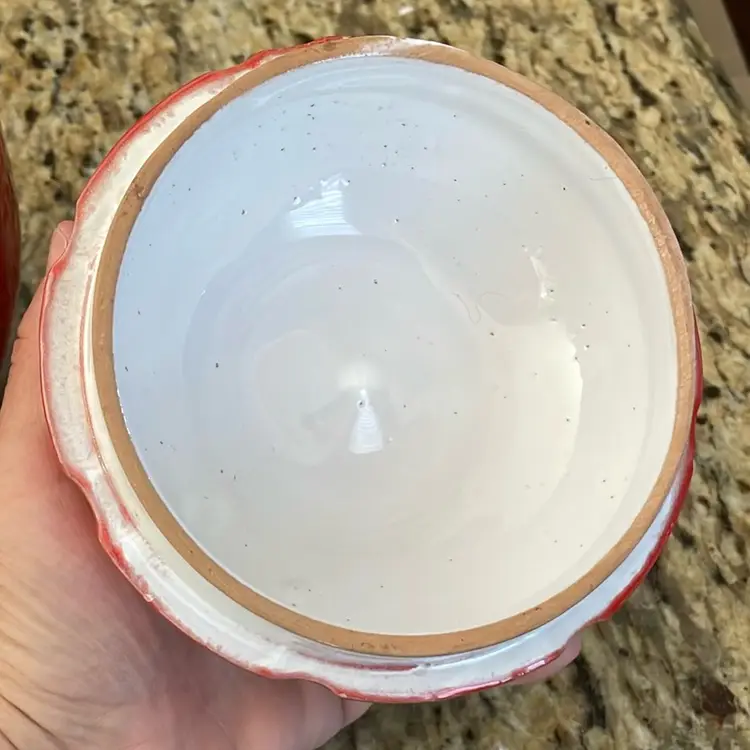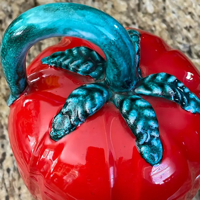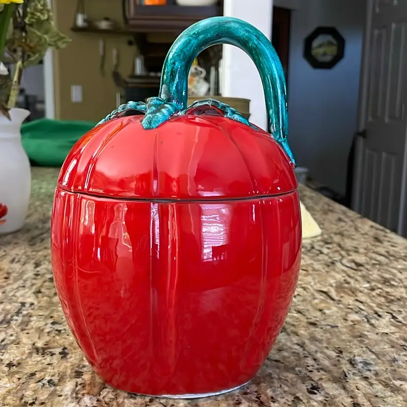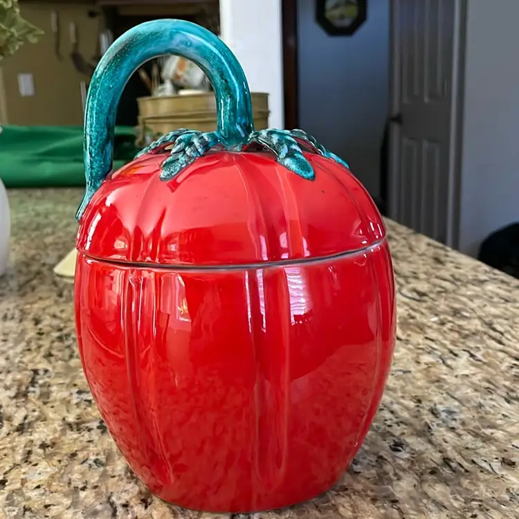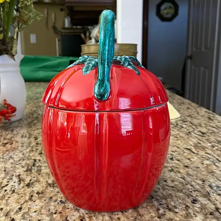 Cute red tomato canister/ cookie jar. Signed by artist. (1)