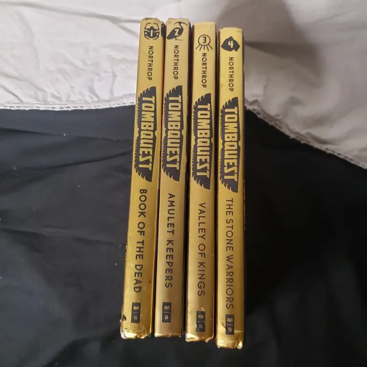 – Book Title: Tombquest Book of the Dead – Book Series: Tombquest – Ex Libris: Yes – Narrative Type: Fiction – Original Language: English – Publisher: Scholastic – Inscribed: No – Intended Audience: Young Adults – Edition: NA – Publication Year: 2015 – Type: Novel – Format: Hardcover – Language: English – Author: Michael Northrop – Personalized: No – Features: Ex-Library – Genre: Adventure, Children & Young Adults – Topic: Books, Fantasy – Country/Region of Manufacture: United States
