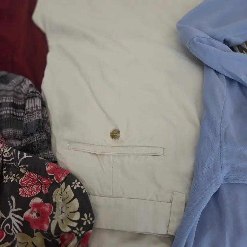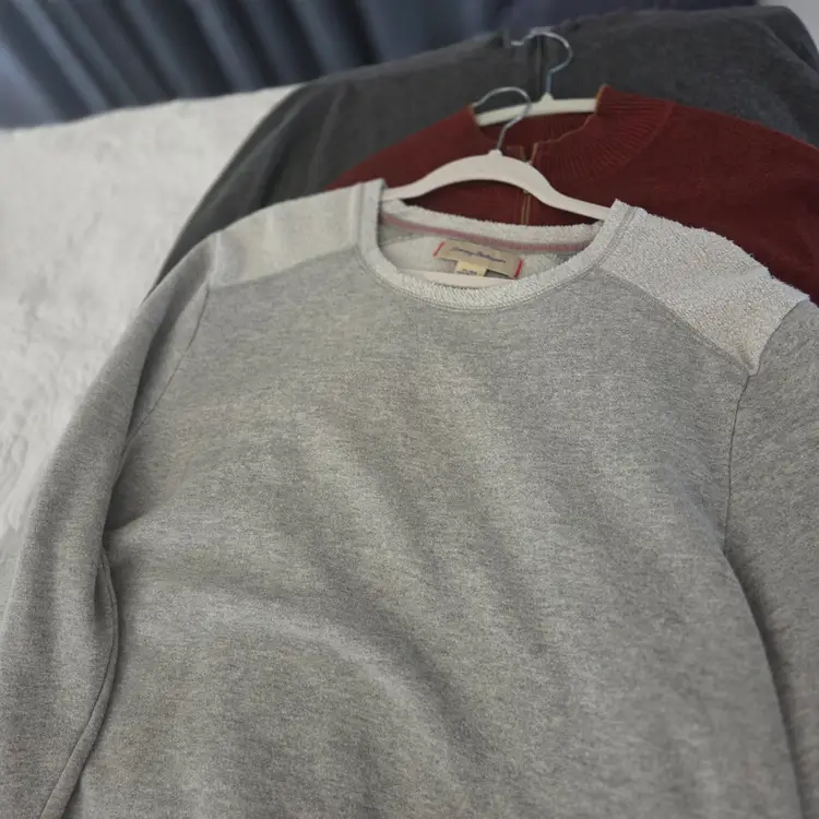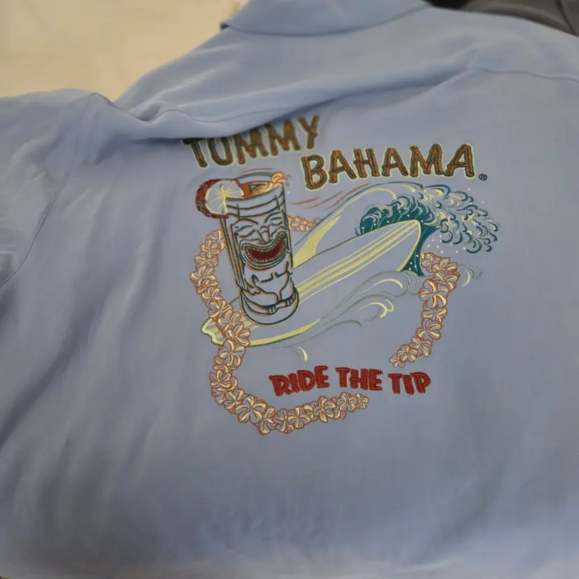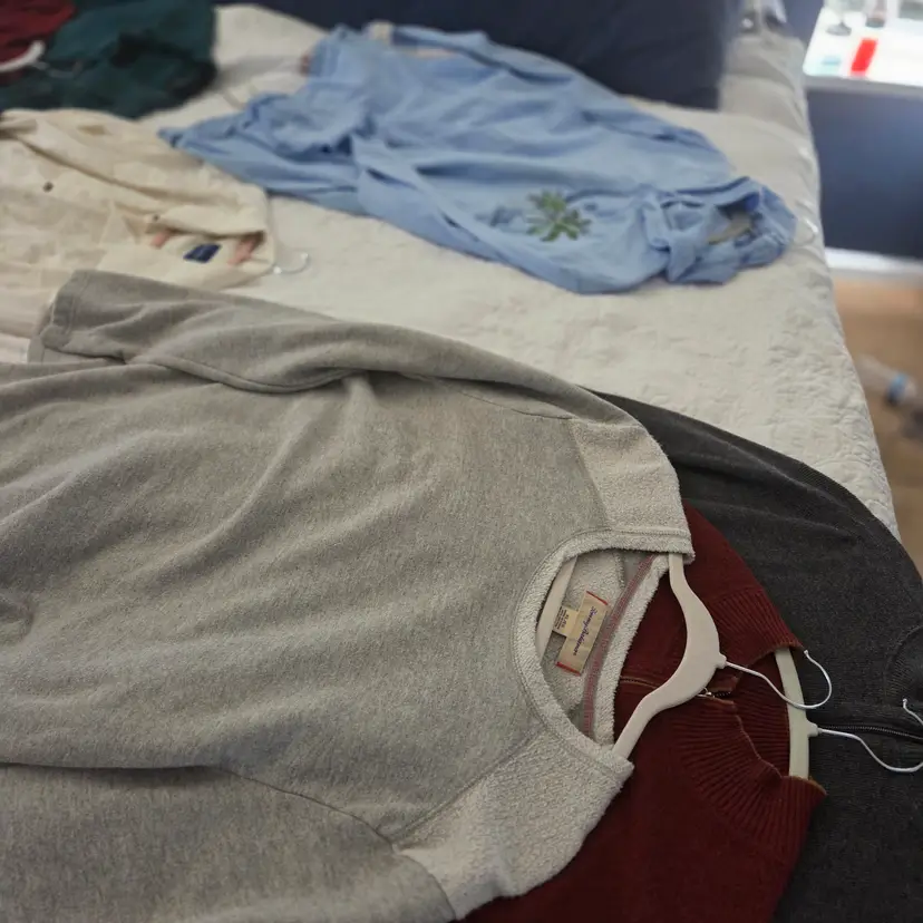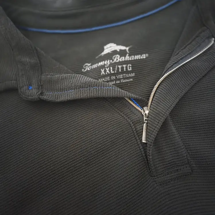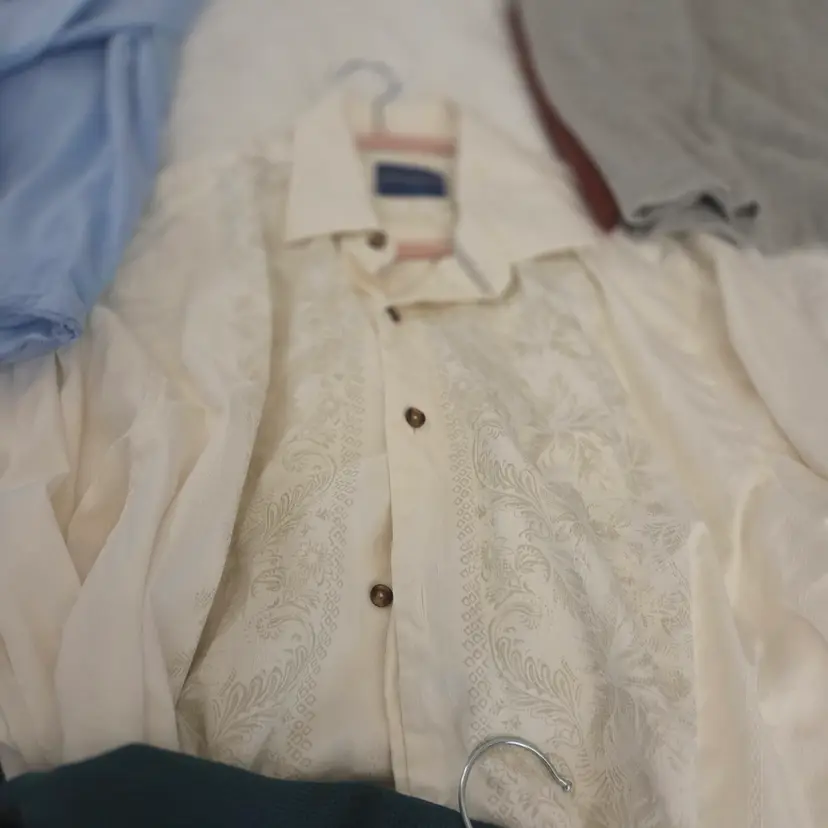 Back hit embroidered piece, embroidered long sleeve hooded tshirt, silk tropical shirts (one boys), 4 polos, silk blend pants, sweaters 1/4 zips 14 pieces. one shirt has a loose corner on a pocket.